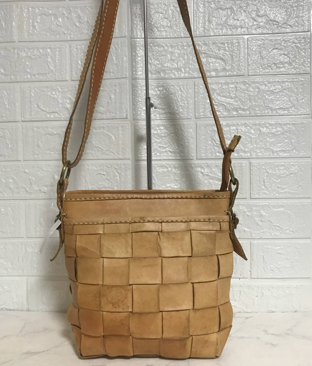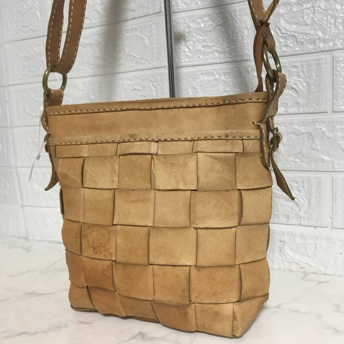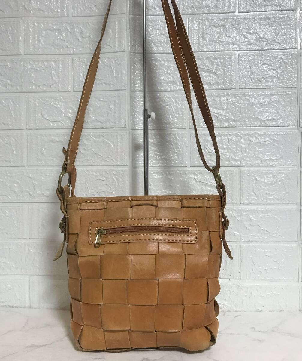no26769 NB 本革 レザー 編み込み 斜め掛けショルダー バッグ ポシェット ☆