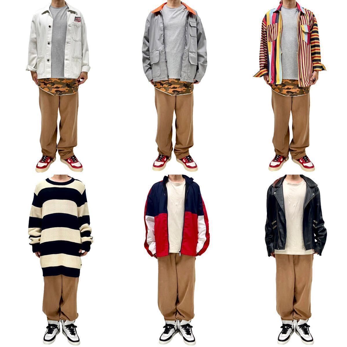 レザーなどのハードな素材のジャケットやニット、スポーティなアイテムなど合わせでも抜け感のあるリラックスした雰囲気を出す事が出来、逆に同じスウェット生地のトップスを合わせてもペインターデザインがコーディネートにメリハリを出してくれます。