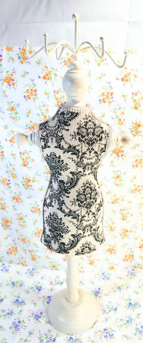 ダマスク柄の可愛いトルソー型ジュエリー掛けで、ヨーロピアンな姫系デザインでオシャレです。