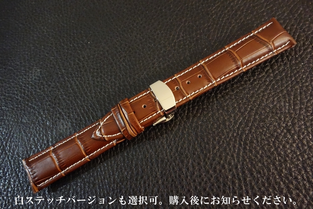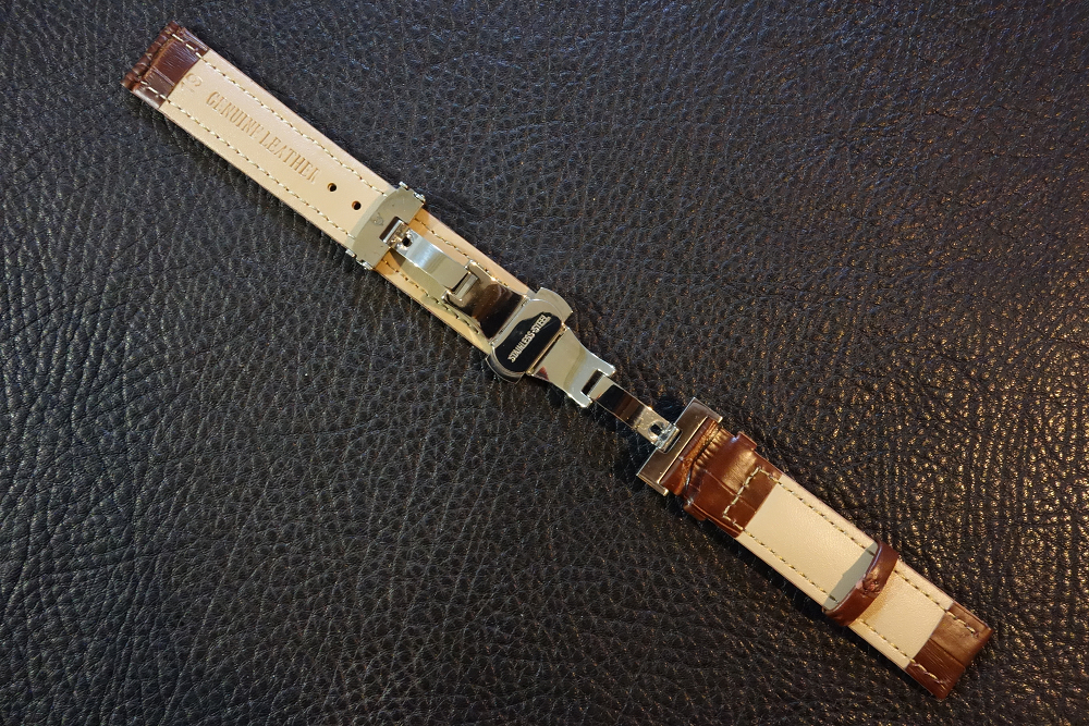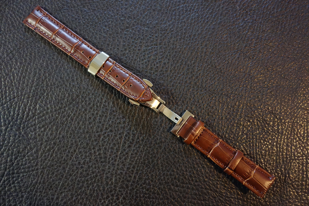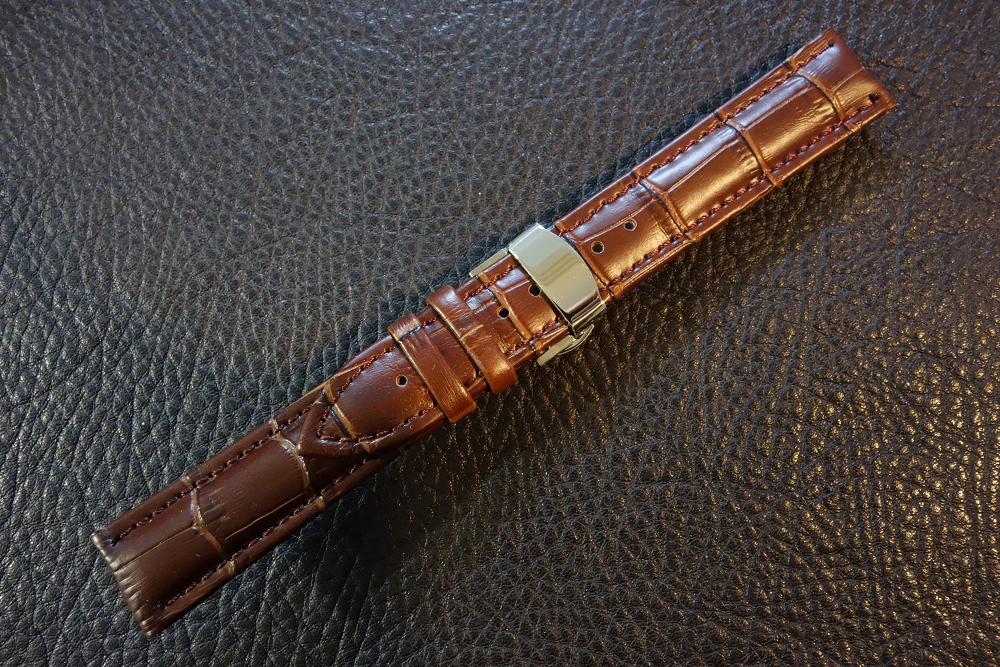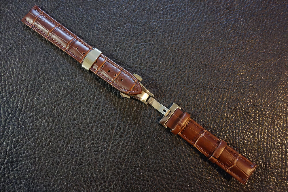 | ◆DBuckle Watch Belt◆ クロコ型押しCalf Leather 16mm 強力撥水 BROWN 新品 バネ棒 バネ棒外し付 STAINLESS BRACELET |
