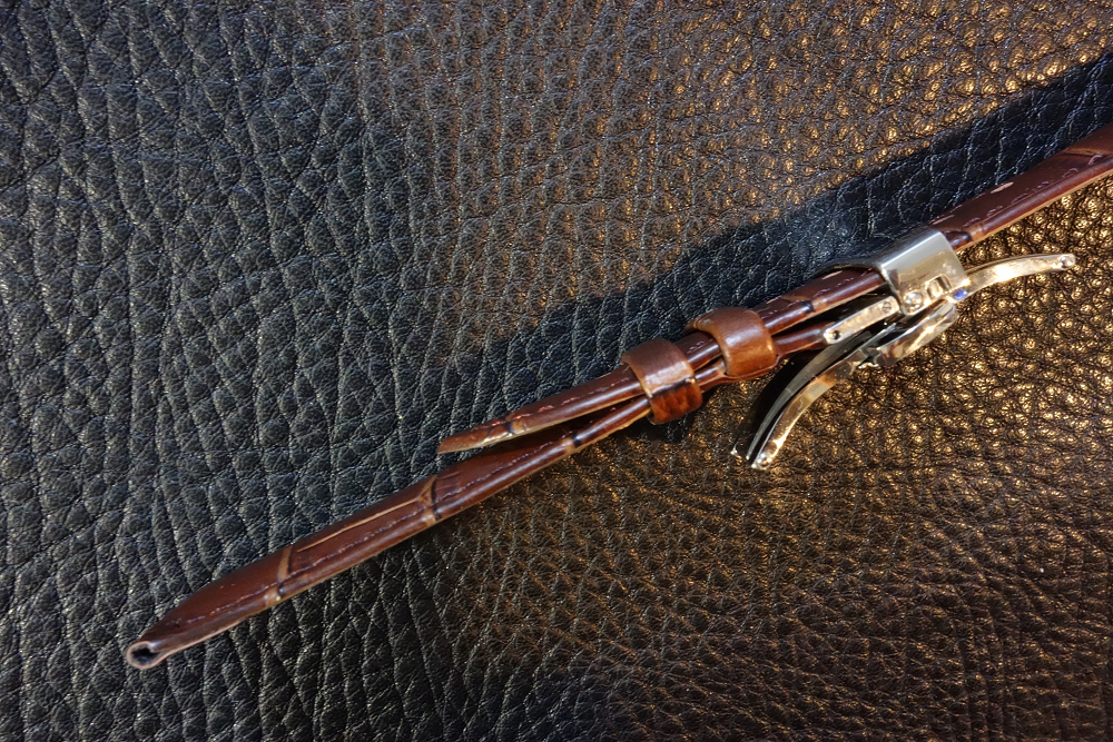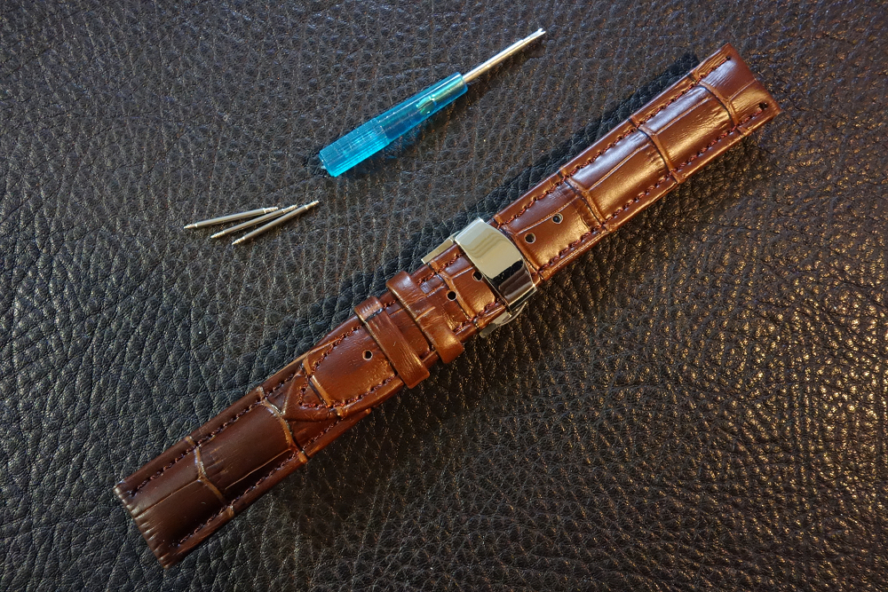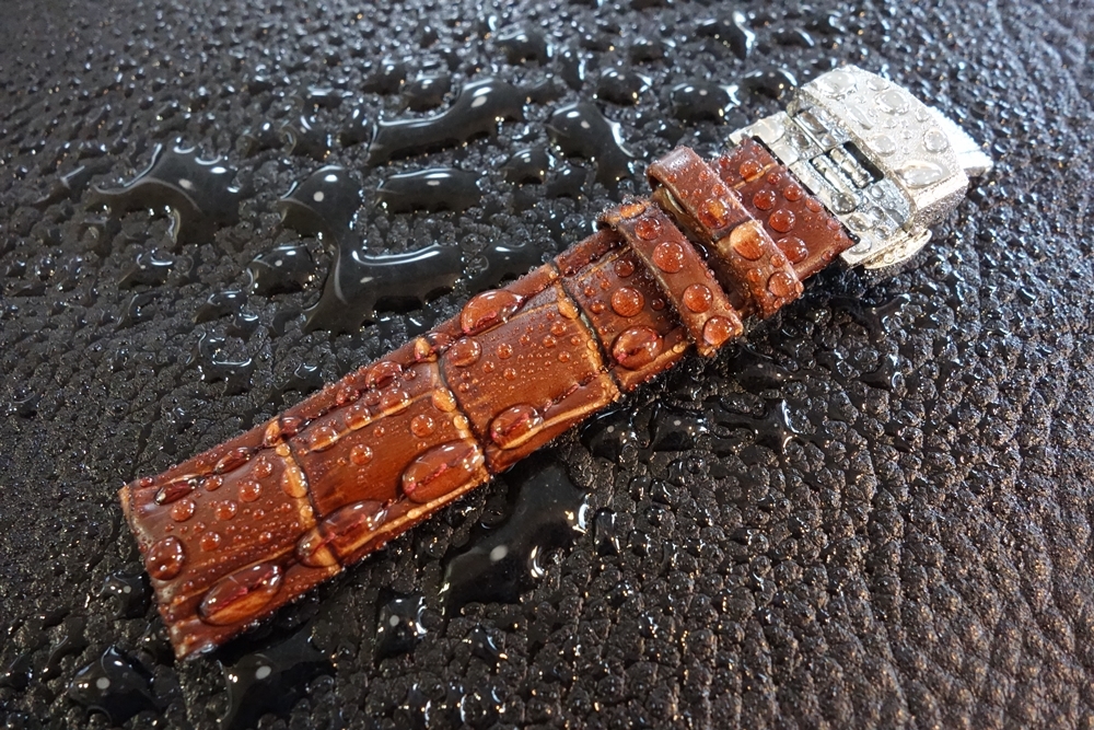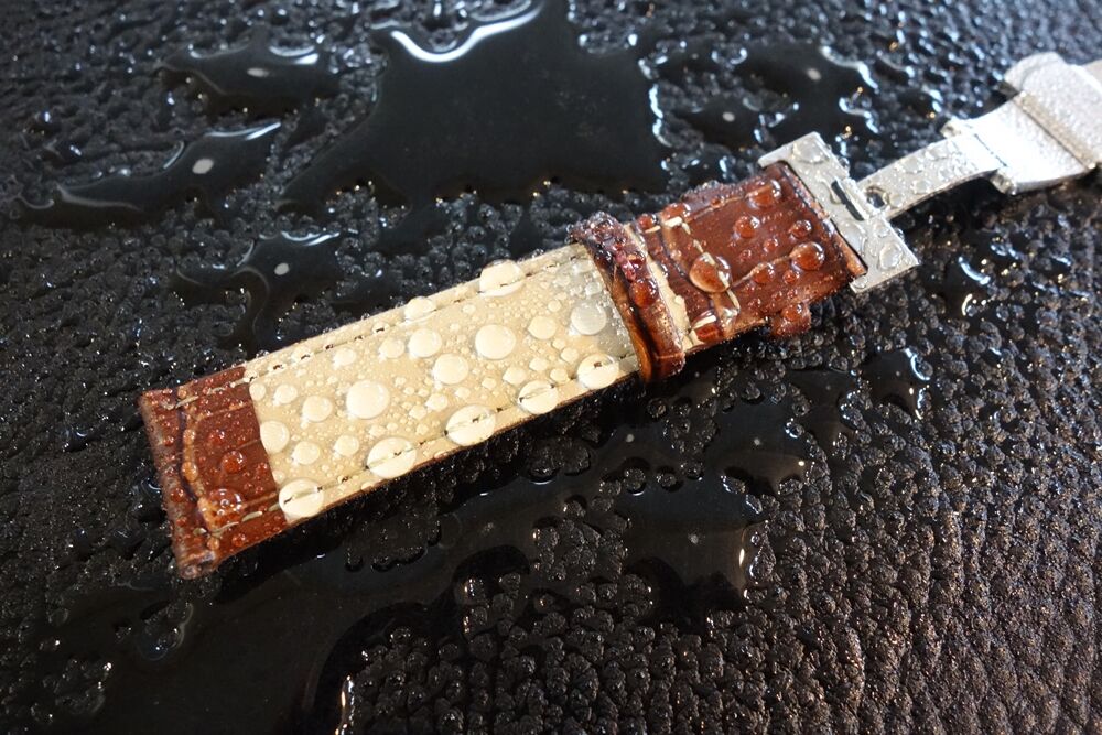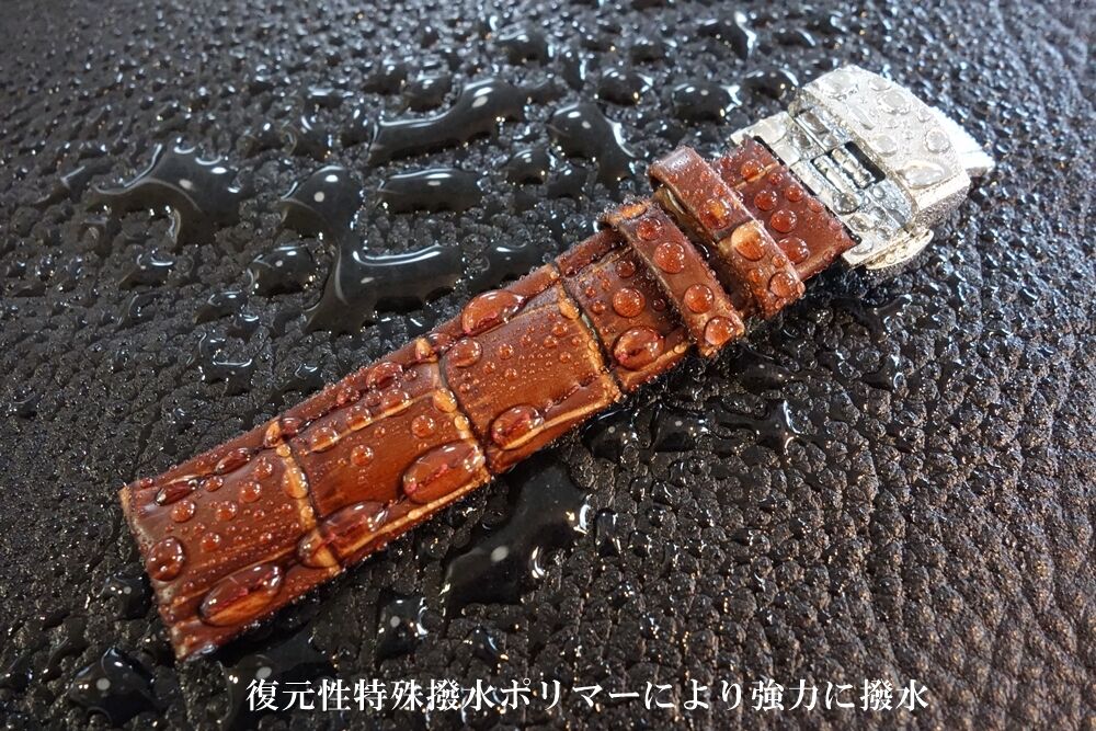 | ◆DBuckle Watch Belt◆ クロコ型押しCalf Leather 16mm 強力撥水 BROWN 新品 バネ棒 バネ棒外し付 STAINLESS BRACELET |