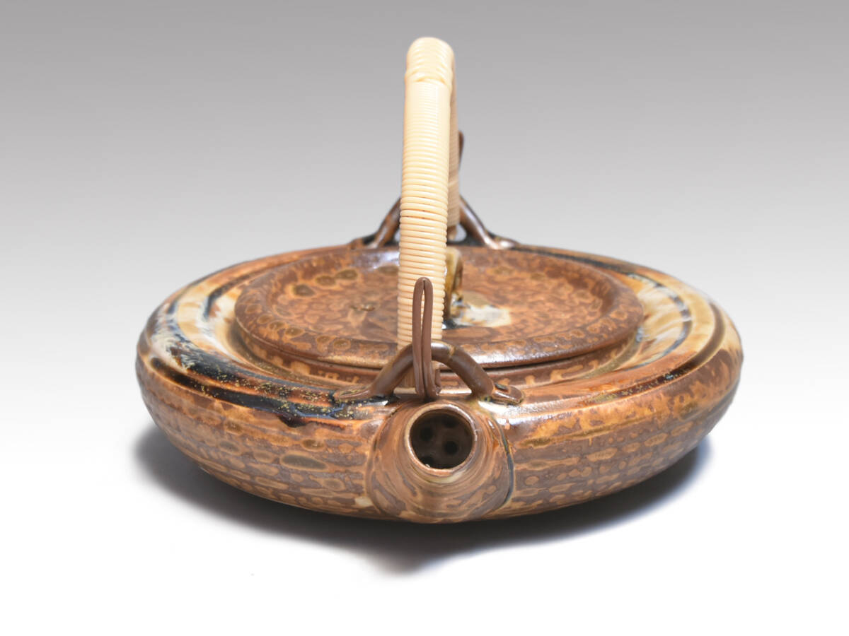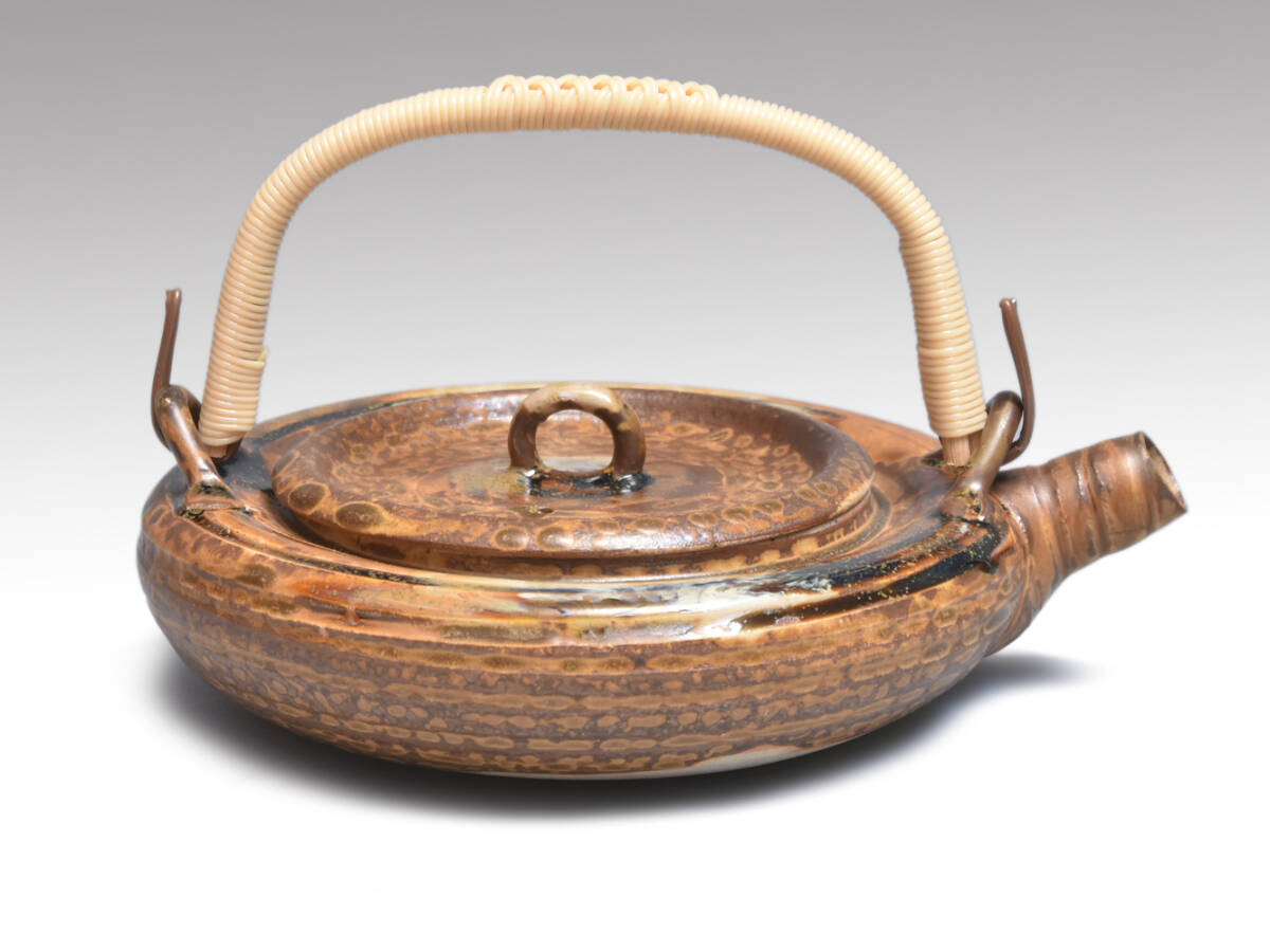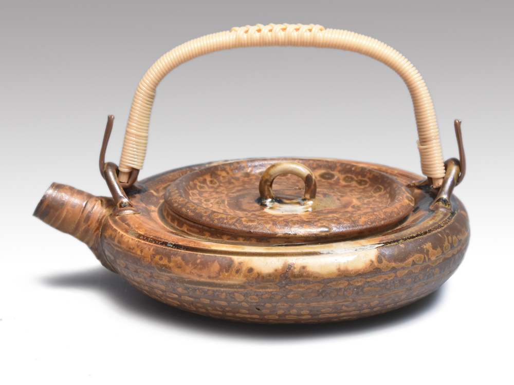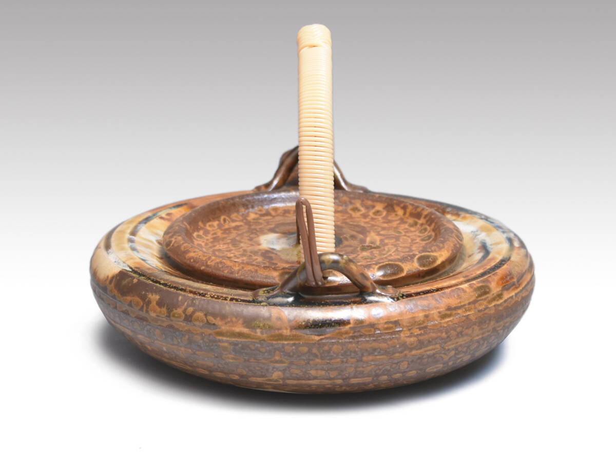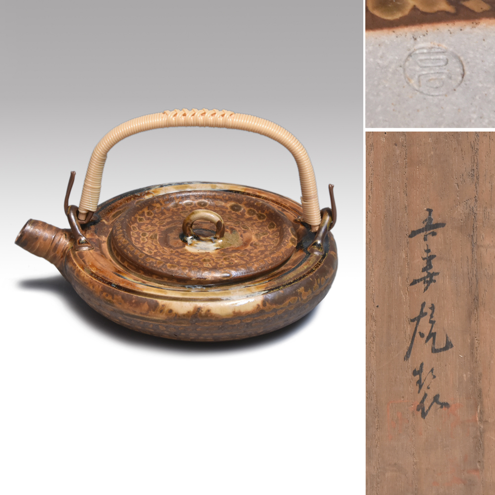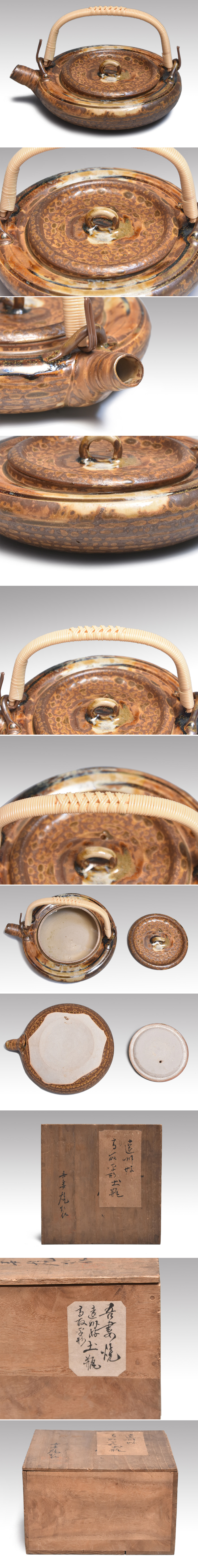 焼成時によって生まれた、高取の風合いが良く出ております。 持ち手は新しく弦が付属しております。 底に銘あり。 美品ですのでキズ等なく良い状態です。 ※撮影の際に生じた写り込みなどがございます。 ご理解の程よろしくお願い致します。 |