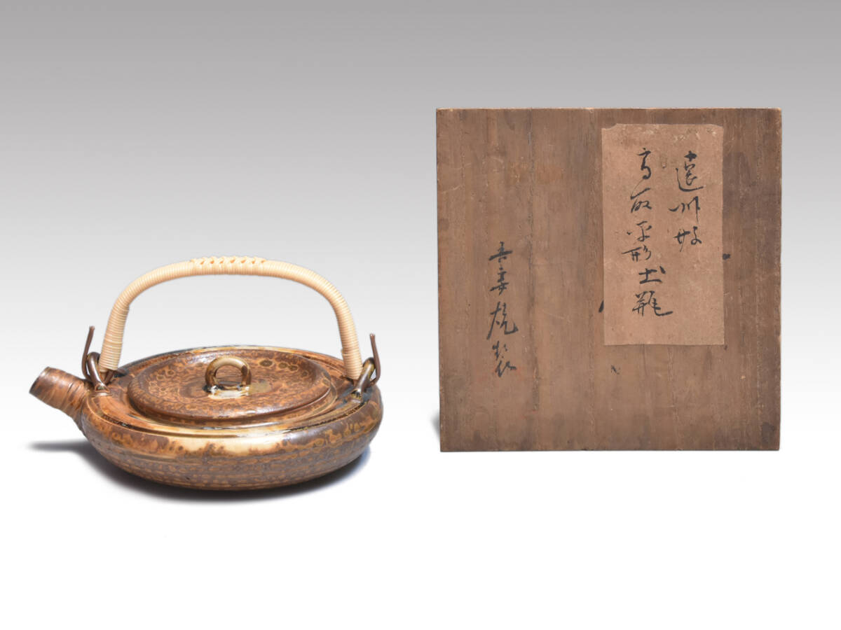 遠州好 高取平形土瓶 時代箱 茶道具 燗鍋 懐石道具 茶懐石 美品 |
