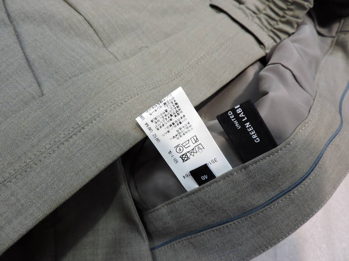| GREEN LABEL RELAXINGのパンツです。 サイズ表記が、 40です。 色が、 カーキっぽいグレーです。 ウエストが平置きで 36cm、股上が 31cm、股下が 62.5cmです。 素材が、 ポリエステル 53%、ウール 43%、ポリウレタン 4%です。 状態は、 綺麗な商品です。 |