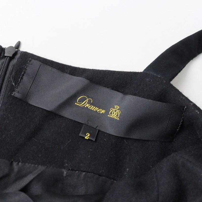 ドゥロワー Drawer ウールカシミヤキャミワンピース 2/ブラック ギャザー フレア ノースリーブ ドレス【2400013719698】