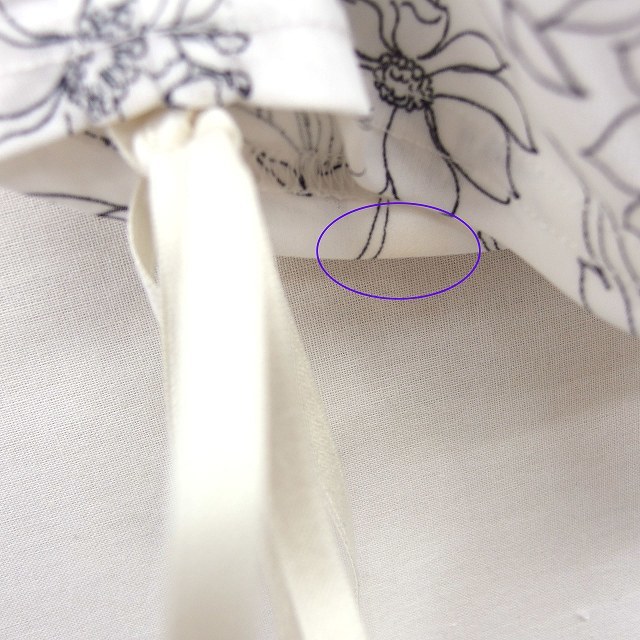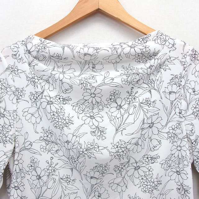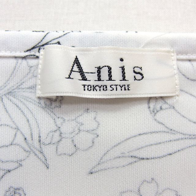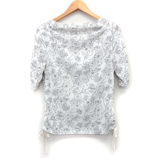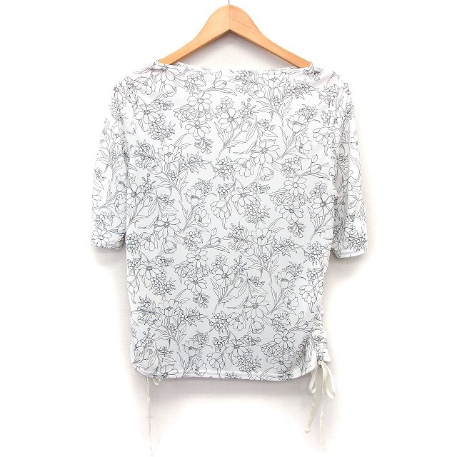 Anis TOKYO STYLE カットソー ブラウス 花柄 絞り紐 ドレープドネック 五分袖 L ホワイト 白 /HT5 レディース