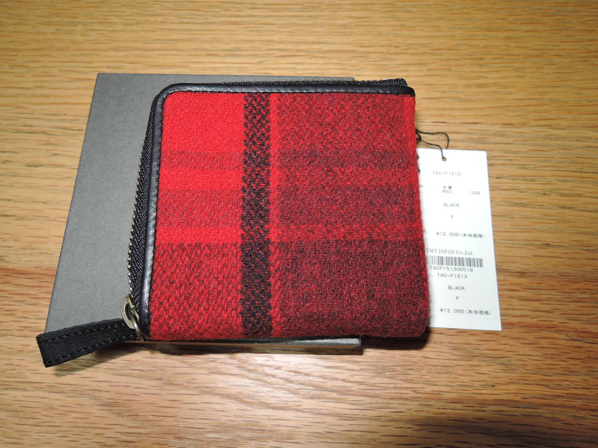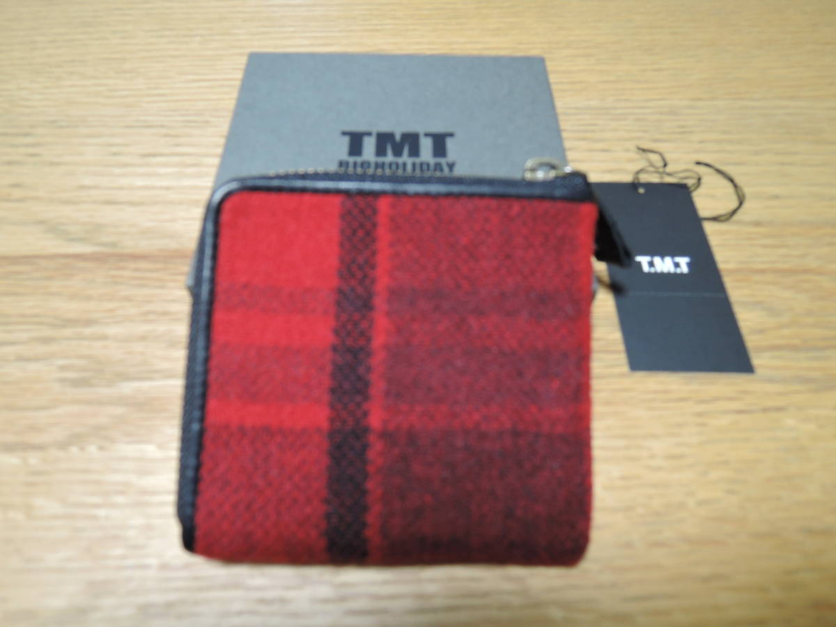 新品 TMT チェック柄 ウオレット 黒赤 小銭入れ レザー ウール 革 サイフ 折りたたみ財布 ティーエムティー