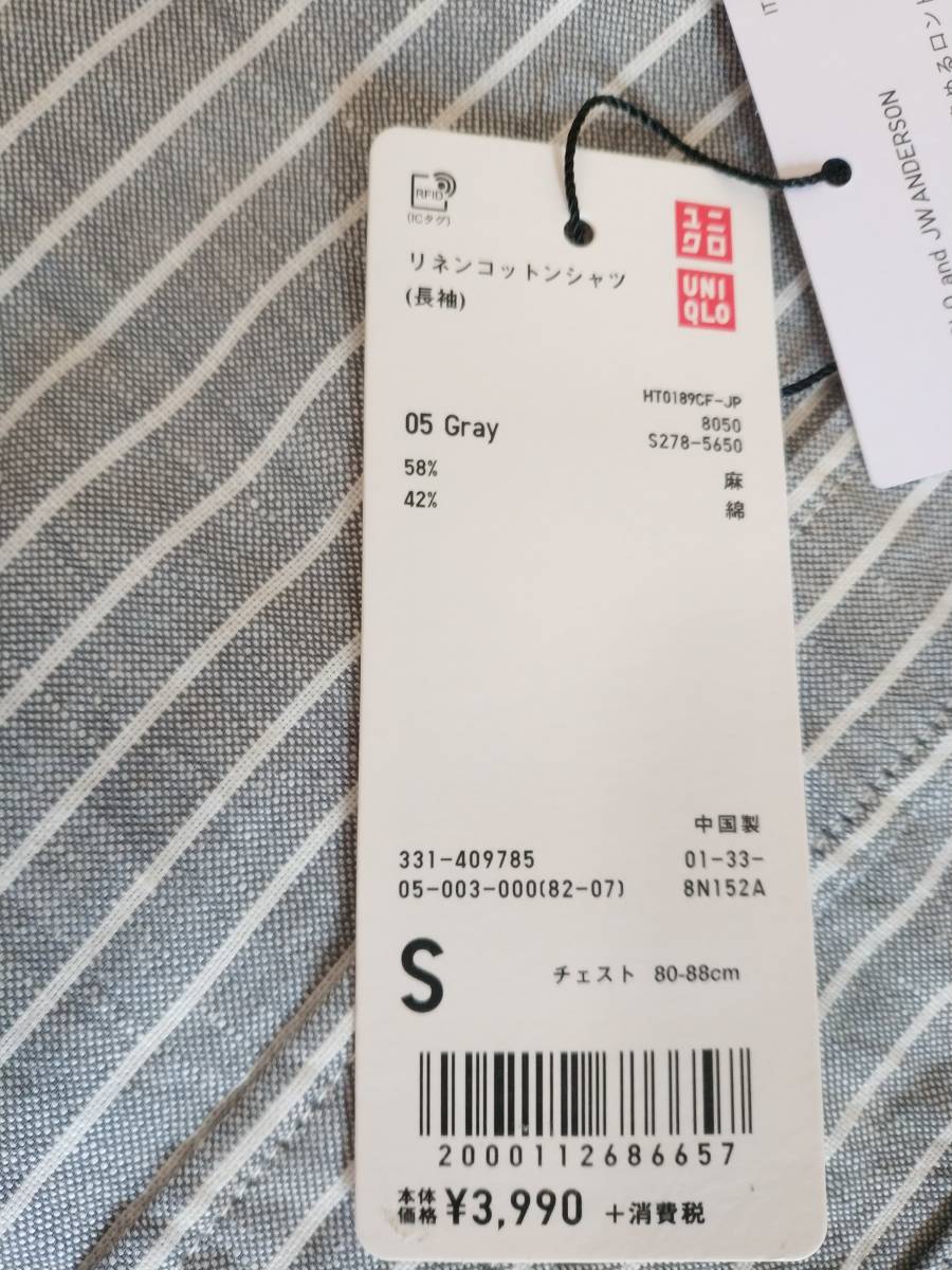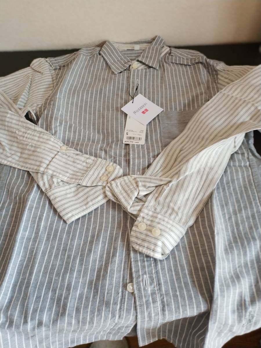 送料230円 新品未使用 JW ANDERSON JWアンダーソン リネンコットンシャツ 長袖 グレー UNIQLOコラボ サイズS 廃盤 ①