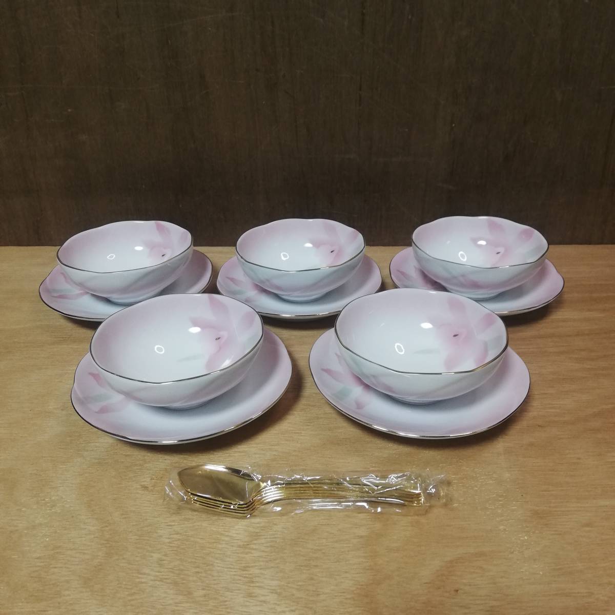 有田焼 翠泉 カトレア 洋ラン デザートセット 5客 ヴィンテージ デッドストック