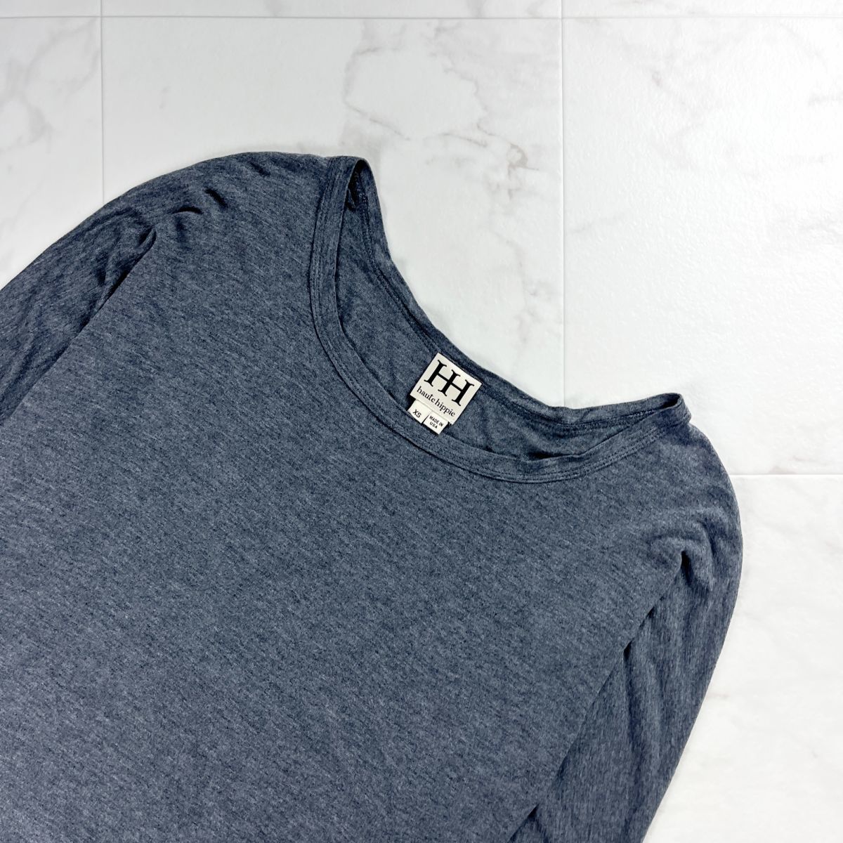 美品 Haute Hippie オートヒッピー ラウンドネックドルマンスリーブカットソー トップス レディース グレー サイズXS*MC795