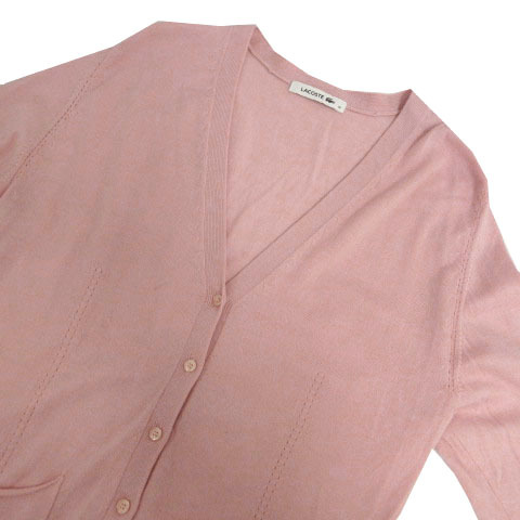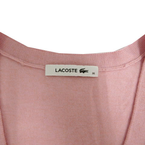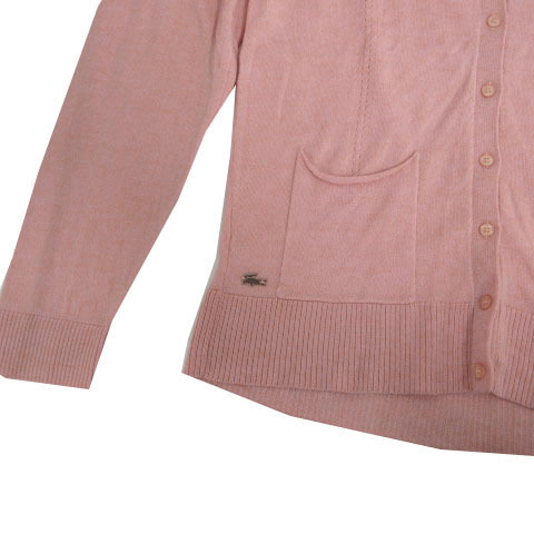 ラコステ LACOSTE カーディガン ニット 長袖 ロゴ ウール ピンク 36 レディース