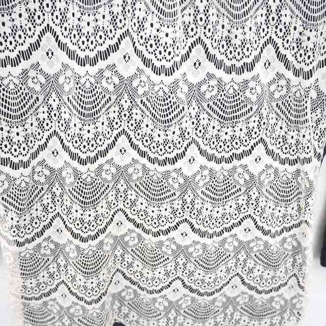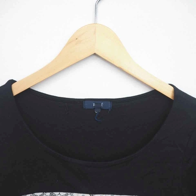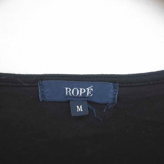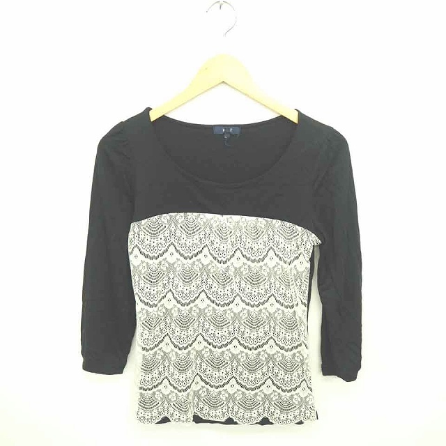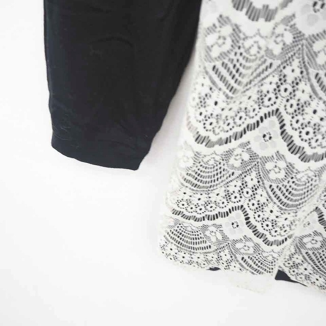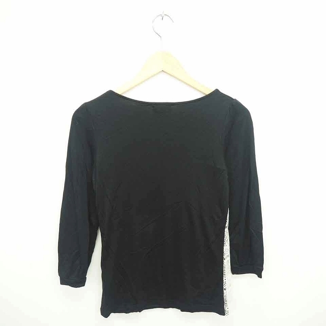 ロペ ROPE カットソー Tシャツ 丸首 レース ウール混 七分袖 M ブラック アイボリー 黒 /TT10 レディース