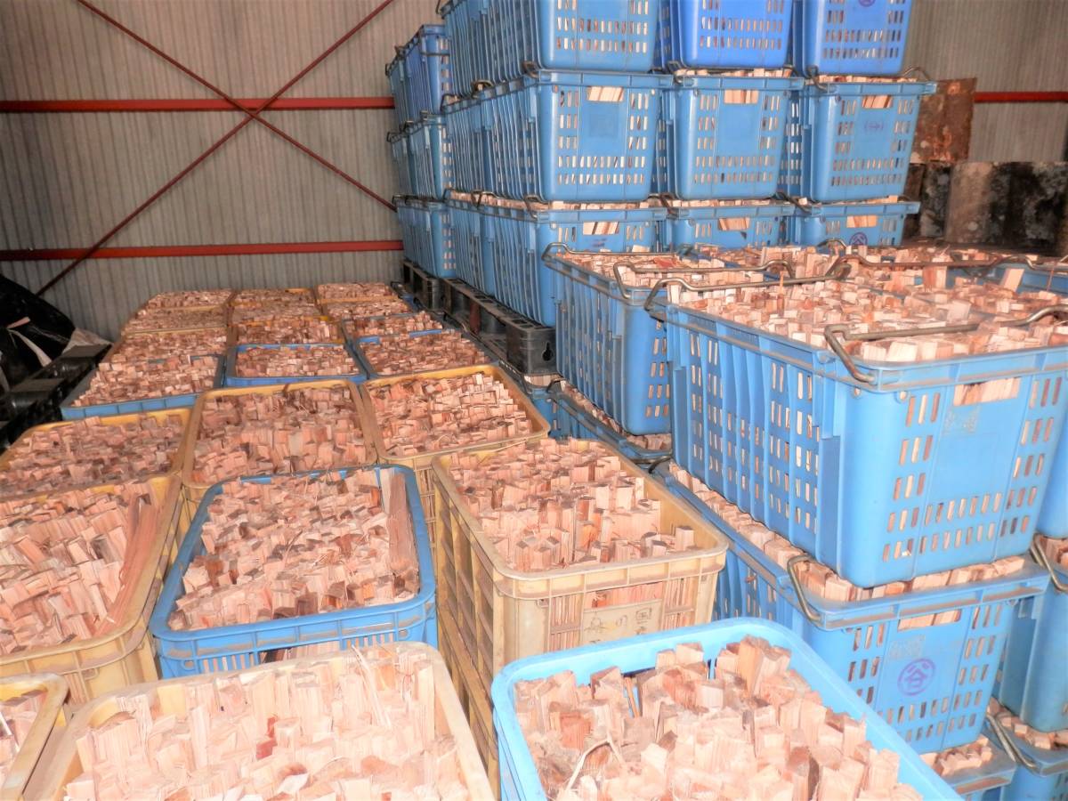 長さ、約30cmに整えて、鉈(ナタ)やキンドリングクラッカー(キンクラ )にて一本一本 |