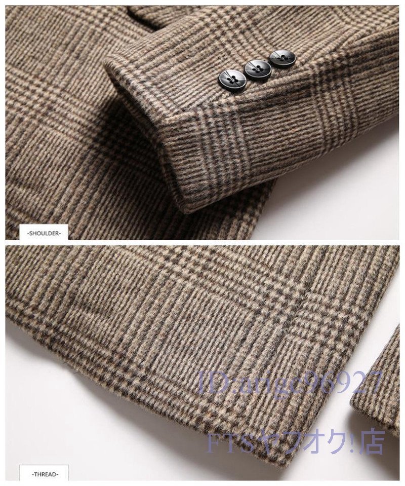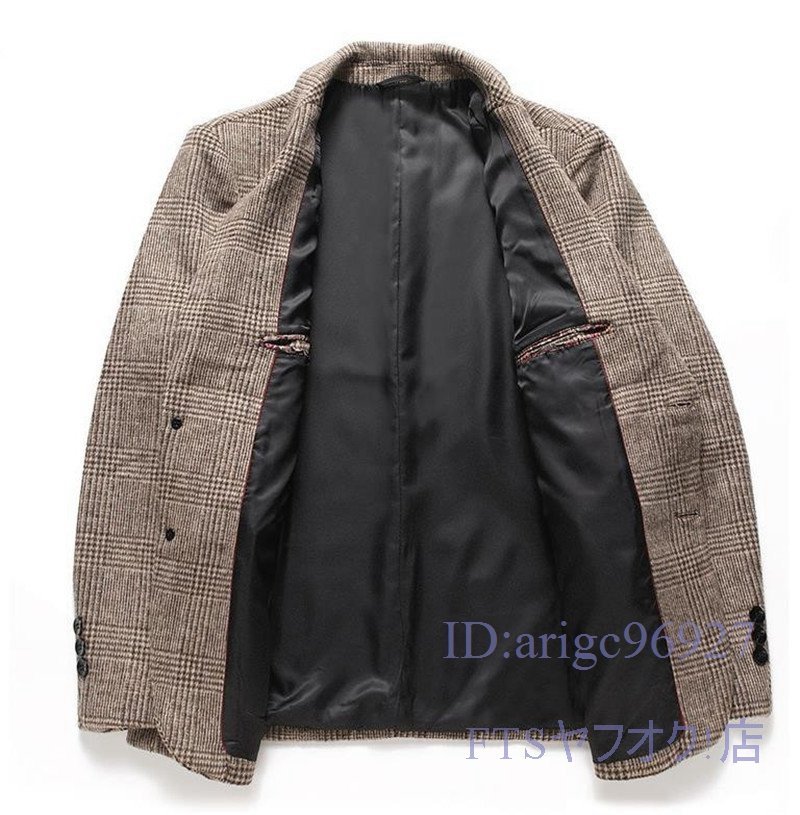 T884☆新品テーラードジャケット チェック柄 メンズ* ウール混ん 秋冬ビジネススーツ フォーマル ブレザー ブルゾン【8818】キャメル L