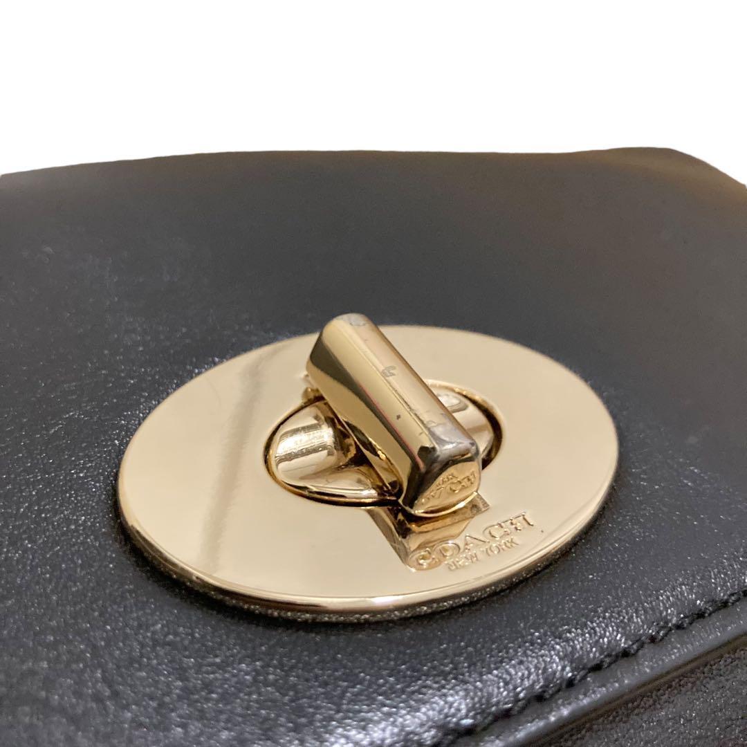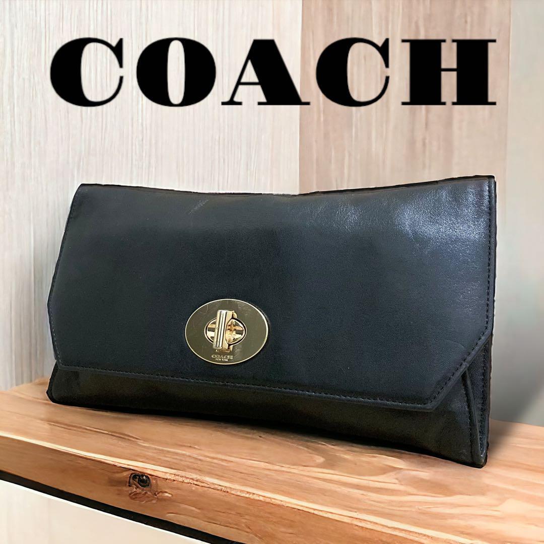 COACH コーチ クラッチバッグ レザー ターンロック ブラック ゴールド金具 セカンドバッグ 黒 レディース メンズ