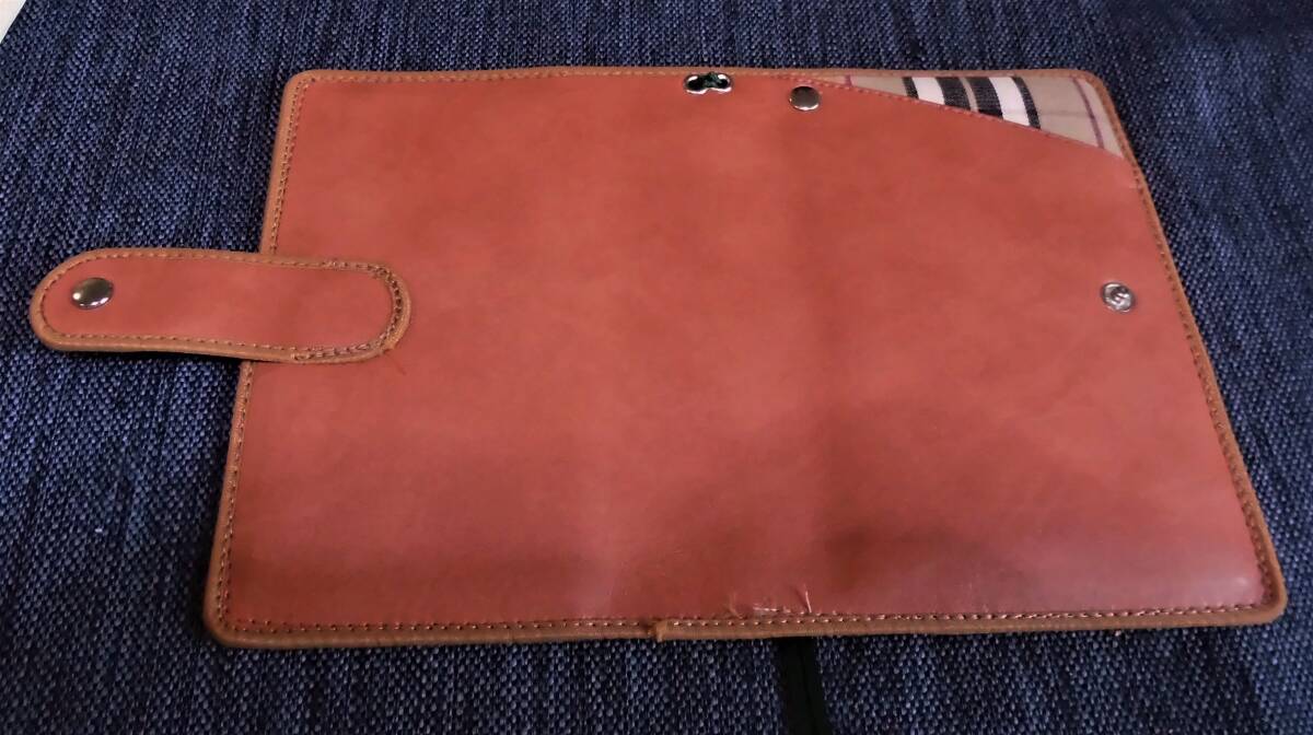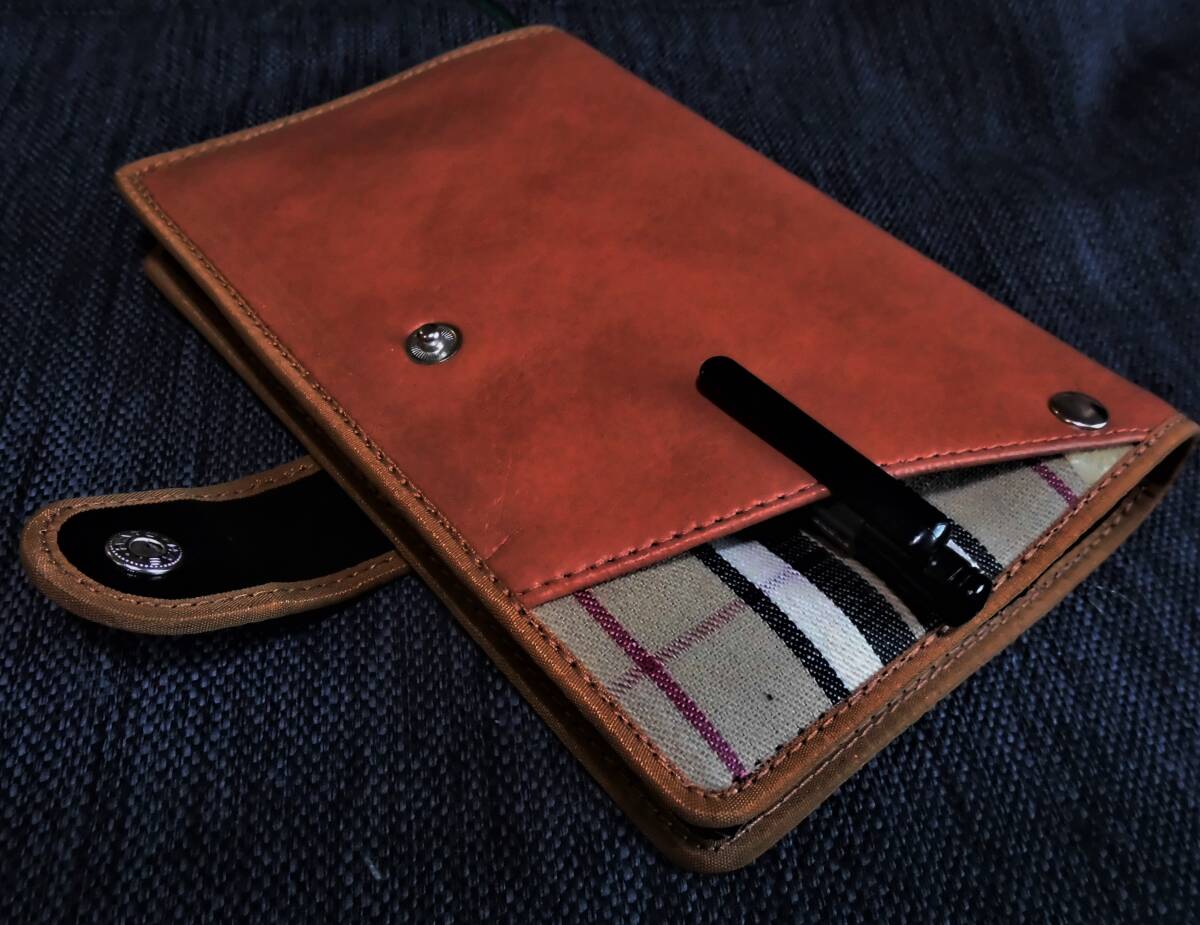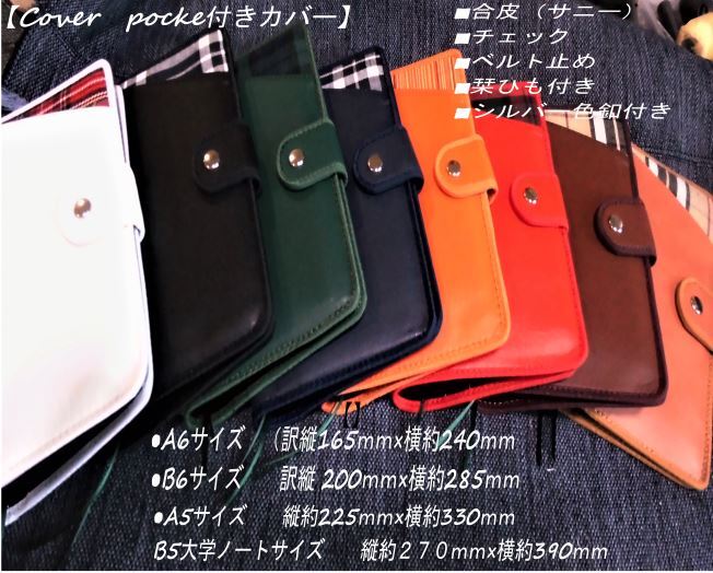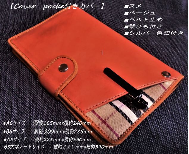A5サイズ【Cover pocke付きノートカバー】ベルト付き■合皮/チェック■ヌメ/ベージュ