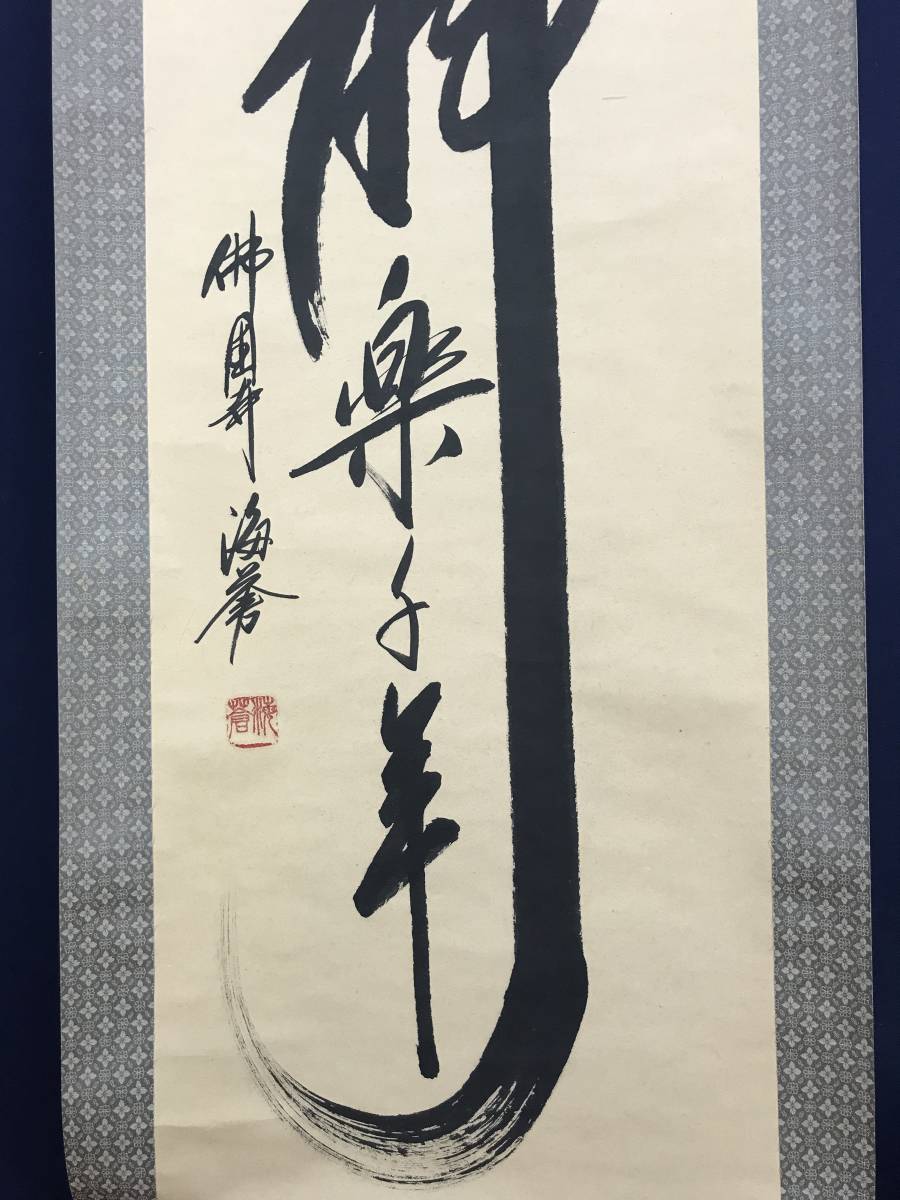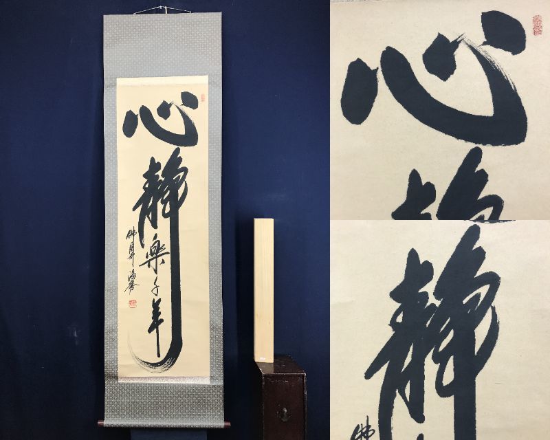 真作/佛國寺海蒼/佛国寺/海蒼/仏国寺/海蒼/一行書/心静楽千年/茶道具/茶掛/禅語/掛軸☆宝船☆AE-404