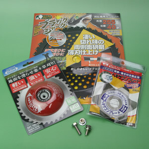 | 弊社実店舗にて良く売れている刈払機用品ばかりをセレクトした、刈刃スペシャルセットです。弊社一押し! 切れ味抜群の草刈りチップソー ブラックシャーク φ255x40P、草がらみ防止のヘキサゴンブレード、地面を滑らせ作業楽々の一定型安定板 ジズライザーからなるお得で便利なセットです。多くの種類の刈払機でご利用頂ける様に左ボルト8mm、左ボルト7mm、左ナット8mmの3種が付属します。 ■対応機種: 左ボルト8mm、左ボルト7mm、左ナット8mmで刃を止めるタイプの刈払機 【草刈りチップソー ブラックシャーク仕様】 ●サイズ: φ255mm×40P ●材質: SKS-5 ●取付穴: 25.4[mm] ●備考: 日本製(播州三木)/JIS規格品 【刈草・巻き付き防止刃 ヘキサゴンブレード仕様】 ●材質:ステンレス鋼 めっき ●2枚入り 【刈払機用一定型安定板 ジズライザー ZAT-H20A 仕様】 ●本体寸法:直径φ100mm×高さ20mm ●本体重量:約78g ●使用素材:金属部-鋼板、樹脂部-ナイロン ●カラー:赤 ※欠品時には申し訳ございませんが納期にお時間を頂く、もしくはキャンセルとさせて頂く場合がありますので御了承下さい。 ※商品改良のため、仕様・外観など予告なく変更する場合があります。 また画像と商品の色が若干異なる場合がありますのであらかじめ御了承下さい。 |