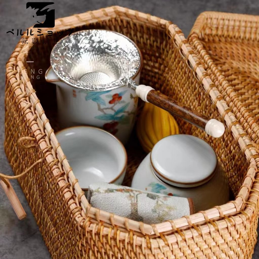 手作り籐製茶器収納ケースケース入りスーツケース かご