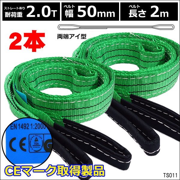 CE規格品 スリングベルト 幅50mm×2m ストレート吊 2T【2本セット】両端アイ型(新品・未使用)
