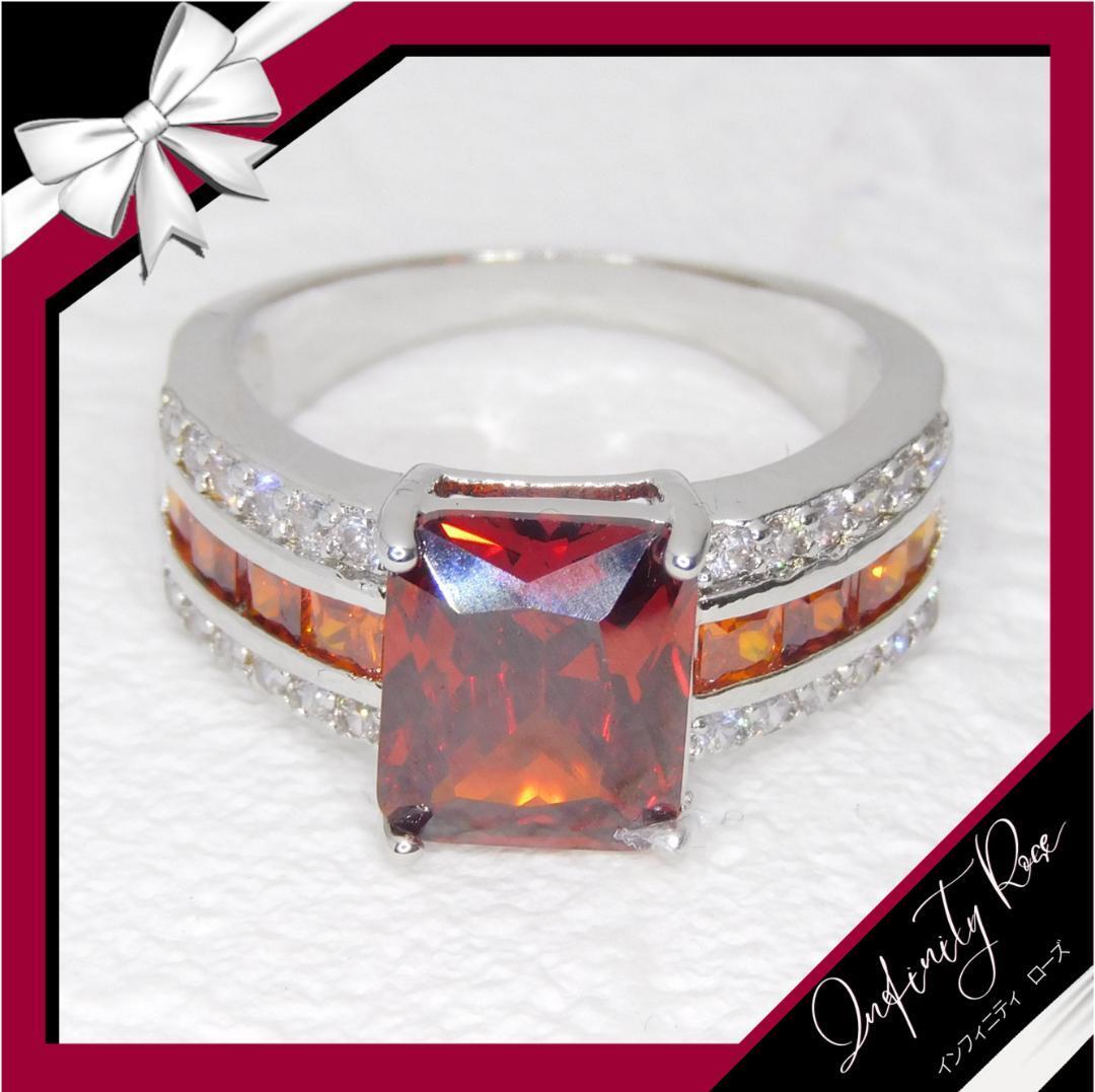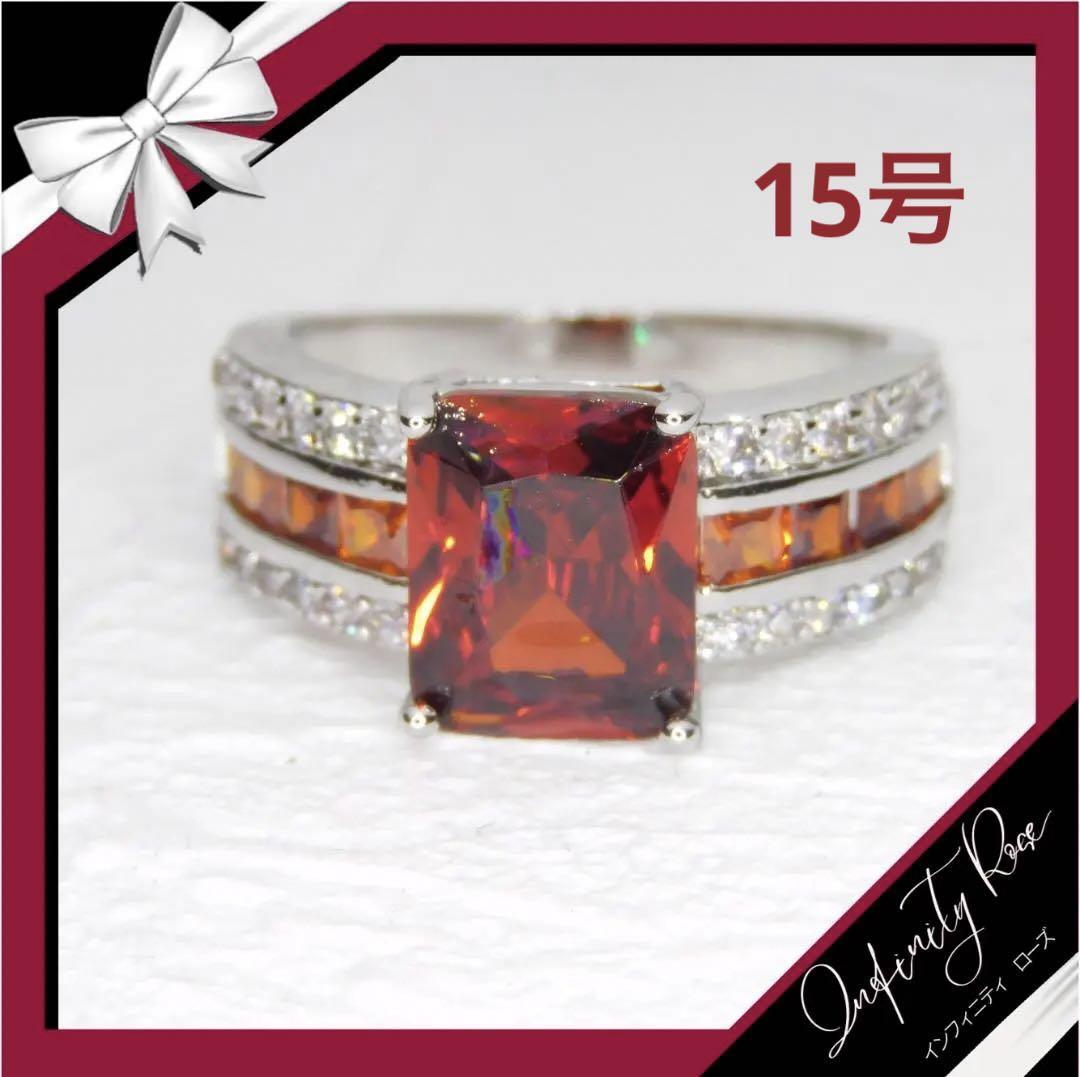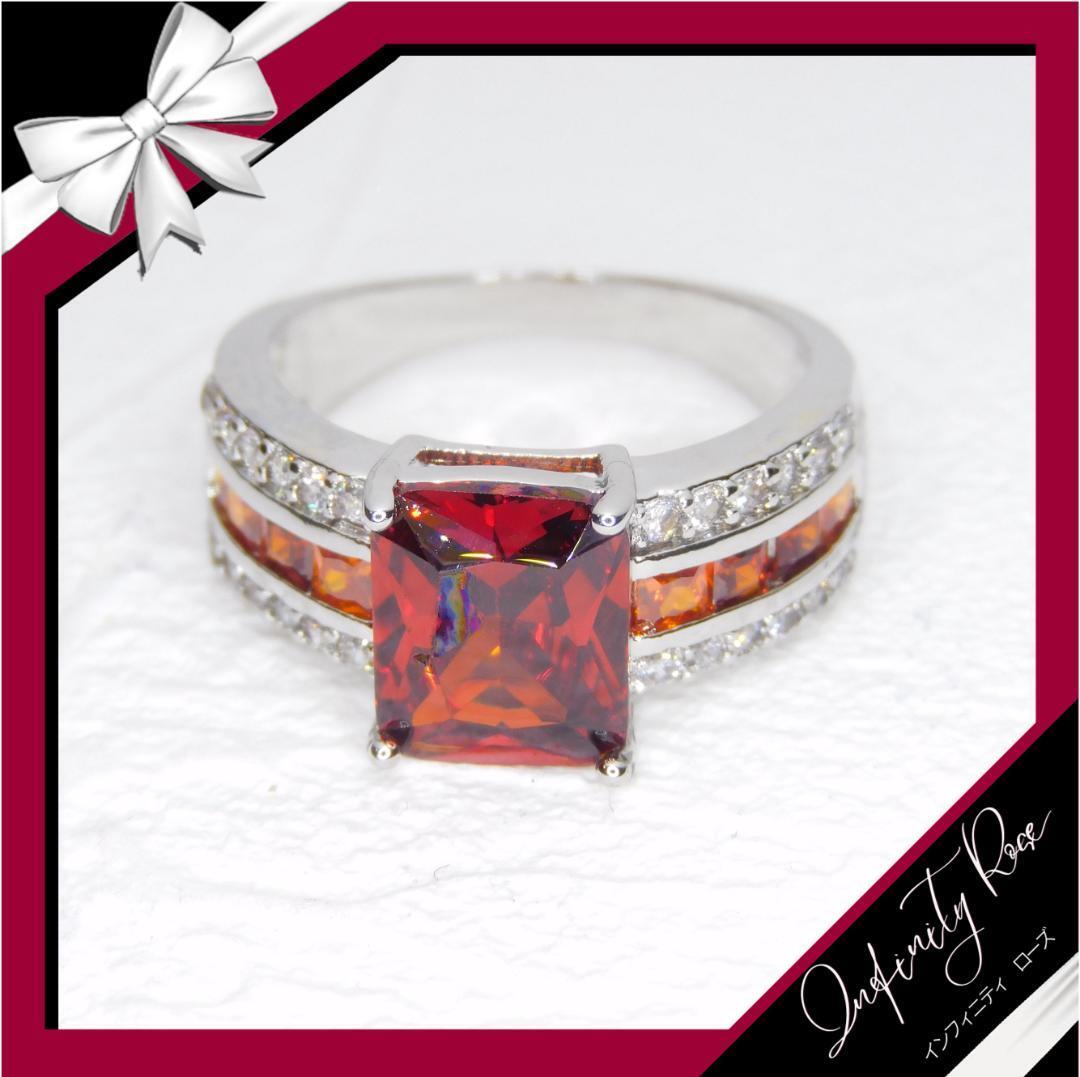 (R047SR)15号 レッド豪華煌めく華やかゴージャスワイドリング 爪留指輪