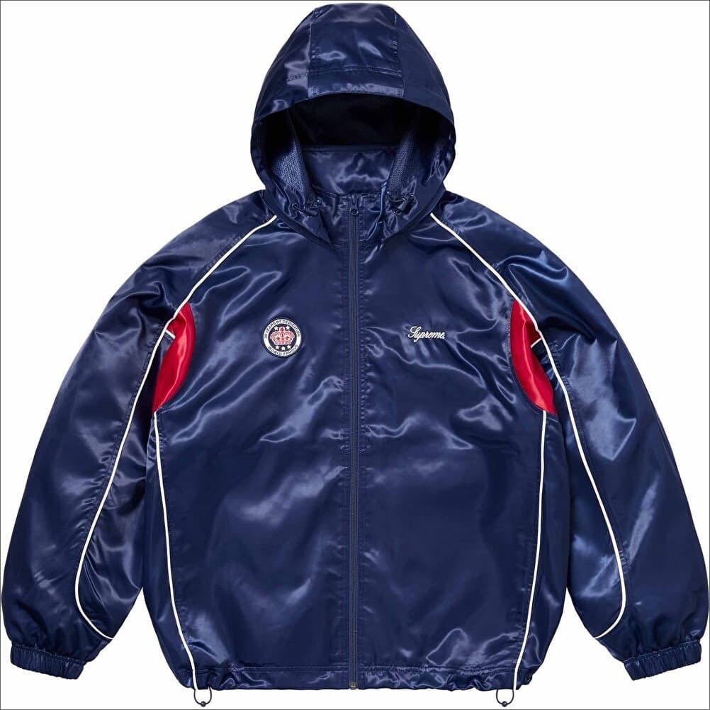 送料無料 L ネイビー Supreme Satin Hooded Track Jacket Navy シュプリーム サテン フード トラックジャケット 24SS Box Logo 30周年 新品