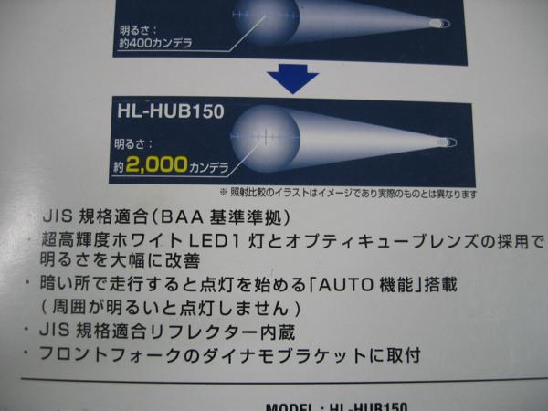 新品 キャットアイ LED ハブダイナモ用 LEDオートライト 2,000カンデラ HL-HUB150 J1端子 取付金具, 取付説明書付 注意 点灯確認してからの発送をしておりますのでノンクレームノンリターン商品になります。 パッケージが割れている場合もございますがご了承下さい。 詳細サイズ等のお答はしておりません。 | |||