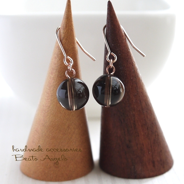 ◆◆+angelo+高品質★天然石スモーキークォーツの一粒ピアス(p-350)PG 10mm ピンクゴールド ブラウン
