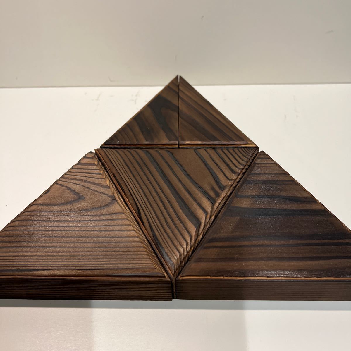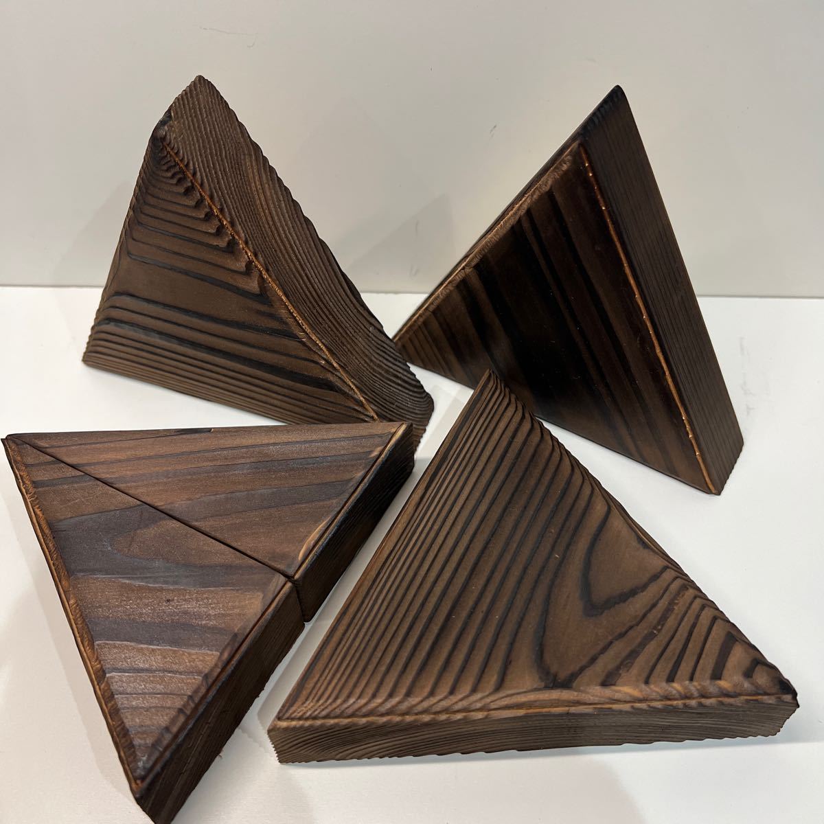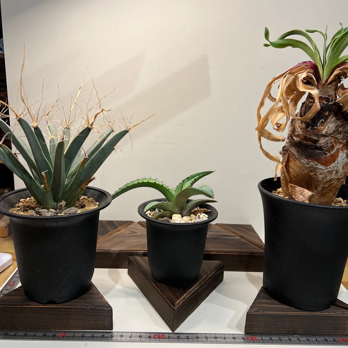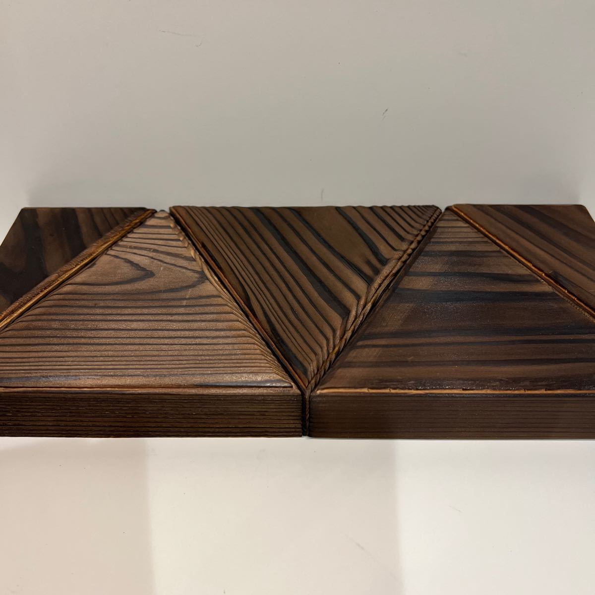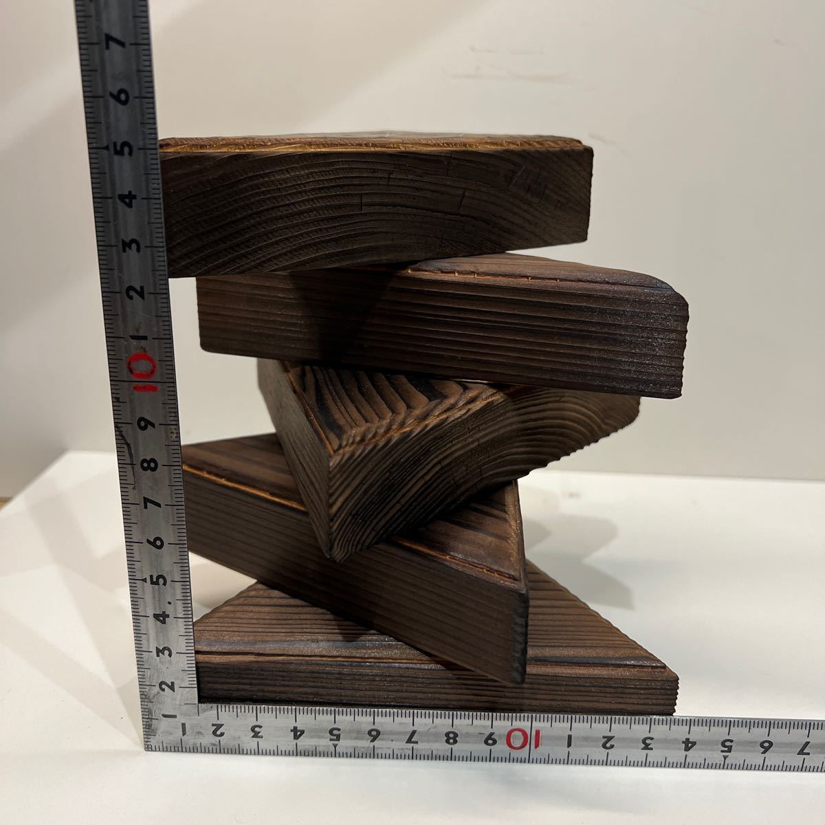 Agaveなどを飾る台にいかがですか?プレーナー仕上げの杉板を加工した物になります。115㎜巾の板を加工して135㎜程度の二等辺三角形になってます。あまり大きいのは置けません、最後の画像を参考にお願いします。木材なので多少のキズやソリ等があると思います、御理解お願い致します。使ってもらえれば嬉しいです。【半分にカットしてる台は檜です。