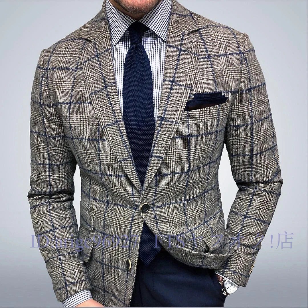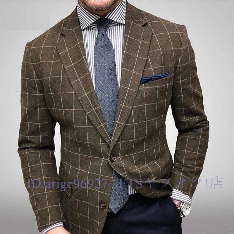 A5394☆新品テーラードジャケット メンズ ブレザー カジュアルスーツ ビジネススーツ チェック柄 フォーマルスーツ 紳士 通勤 結婚式