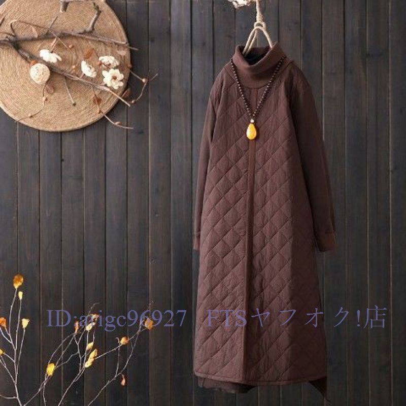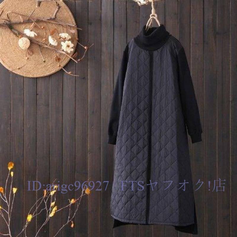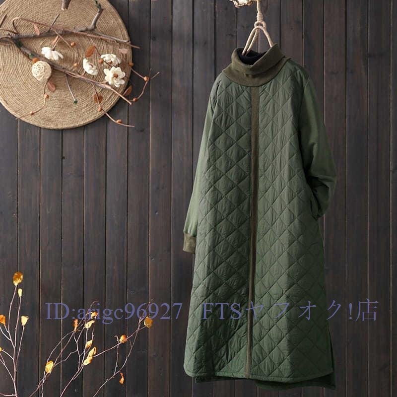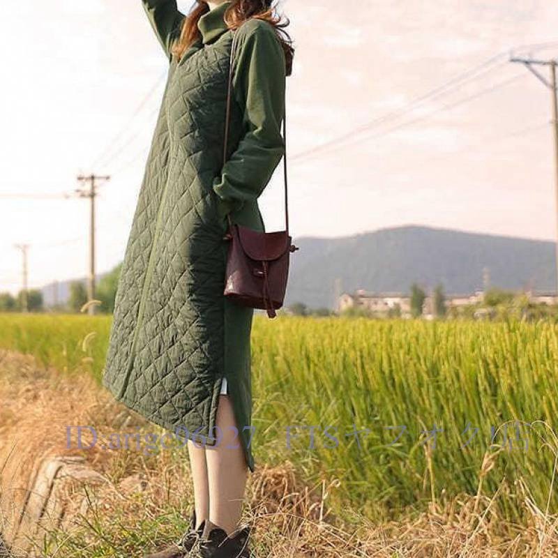 A5396☆新品ワンピース チュニック 綿入り 大人可愛 ゆったり 暖かい 楽ちん グリーン