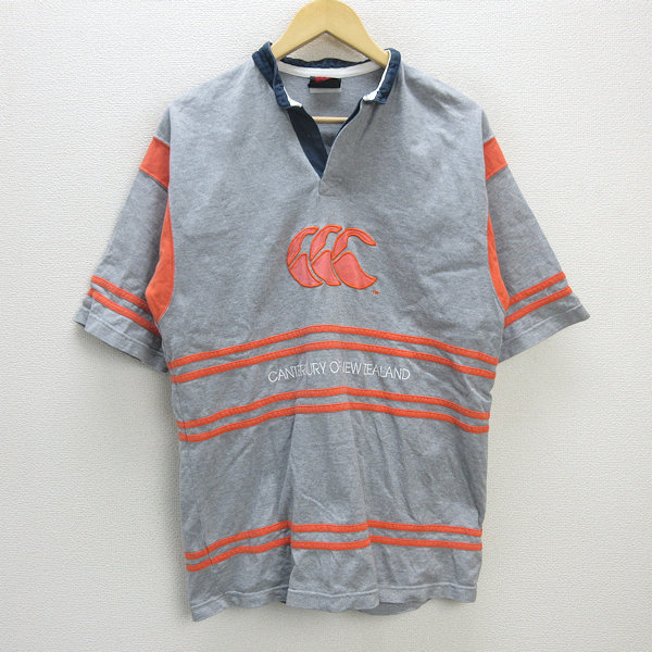 G■カンタベリー/CANTERBURY ビッグロゴ/ラガーシャツ【M】灰/men's/121【中古】■
