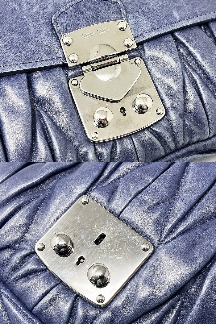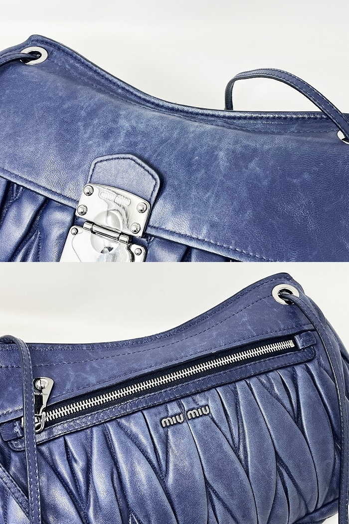 | 商品説明 | 管理番号2206033 ブランド名:ミュウミュウ ライン:マテラッセ 商品名:ショルダーバッグ サイズ:縦21cm 横32cm 奥行き6cm 仕様:プッシュロック開閉式 外ファスナーポケット×1 内ファスナーポケット×1 内オープンポケット×1 素材:ナッパレザー 色:ネイビー 付属品:保存袋 程度:未使用品 ☆コメント ナッパレザーですので柔らかい質感です。 ☆程度 フラップ外側、内側、表面に擦れがございます。金具内側に打痕がございます。内側に汚れ、シミ、傷はございません。 |