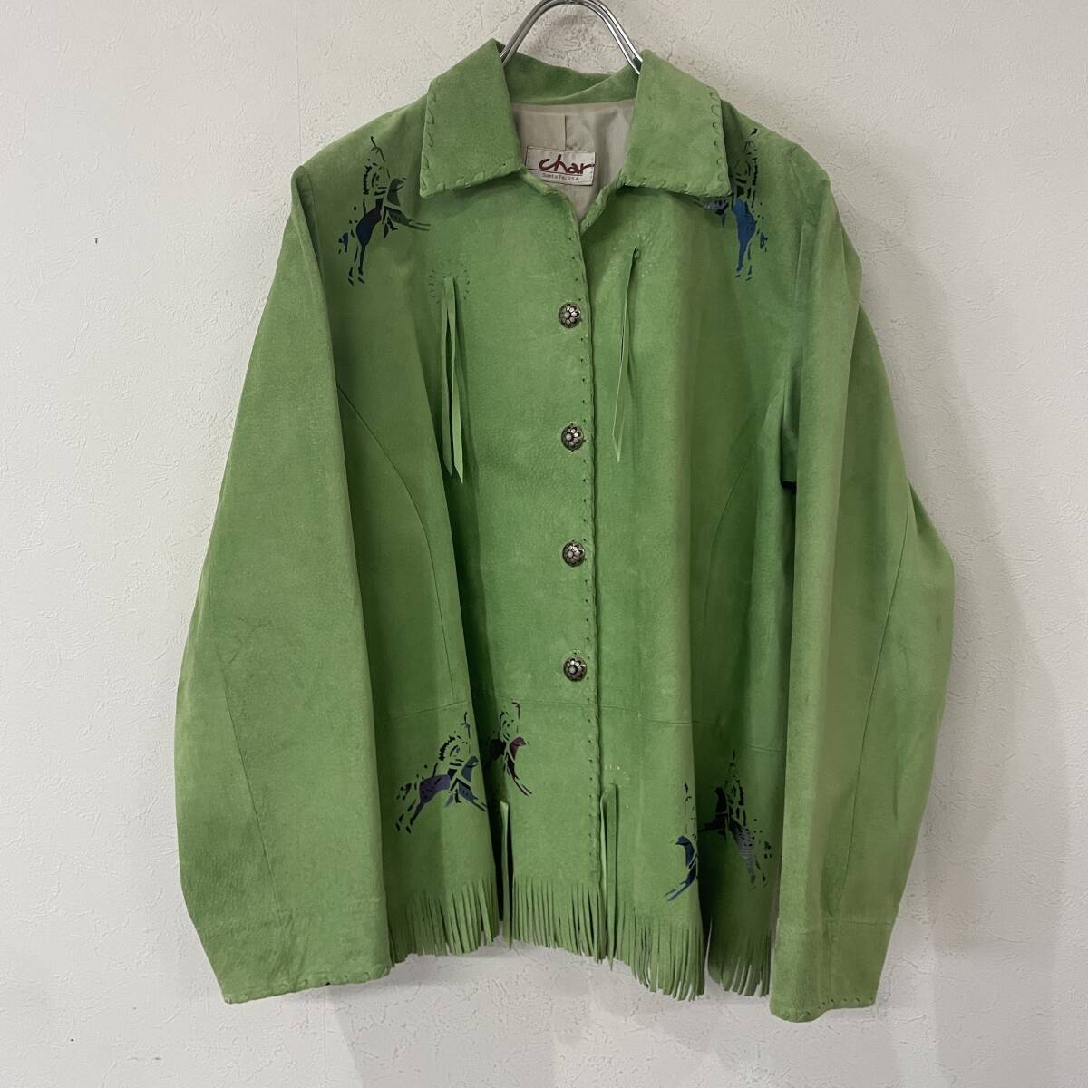 ビンテージ 80s 90s char レザー ジャケット フリンジ スウェード 240315