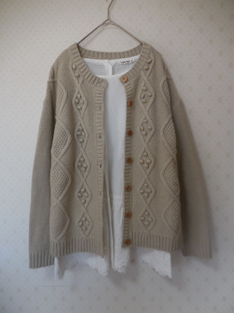 sm2のとても可愛い模様編みクルーネックカーディガンです。