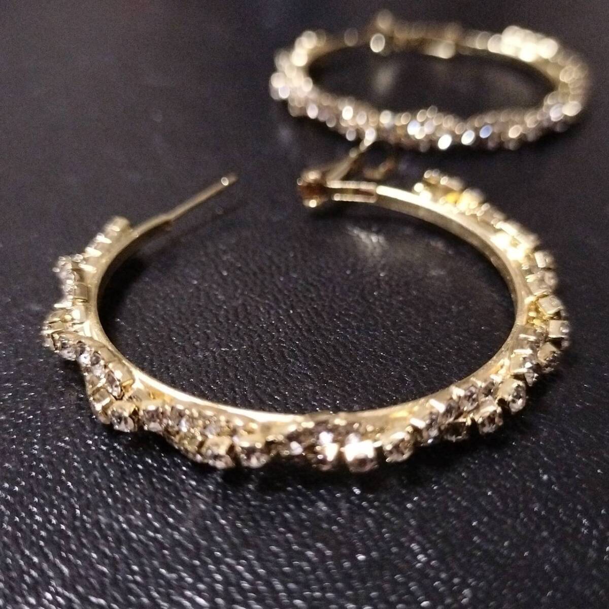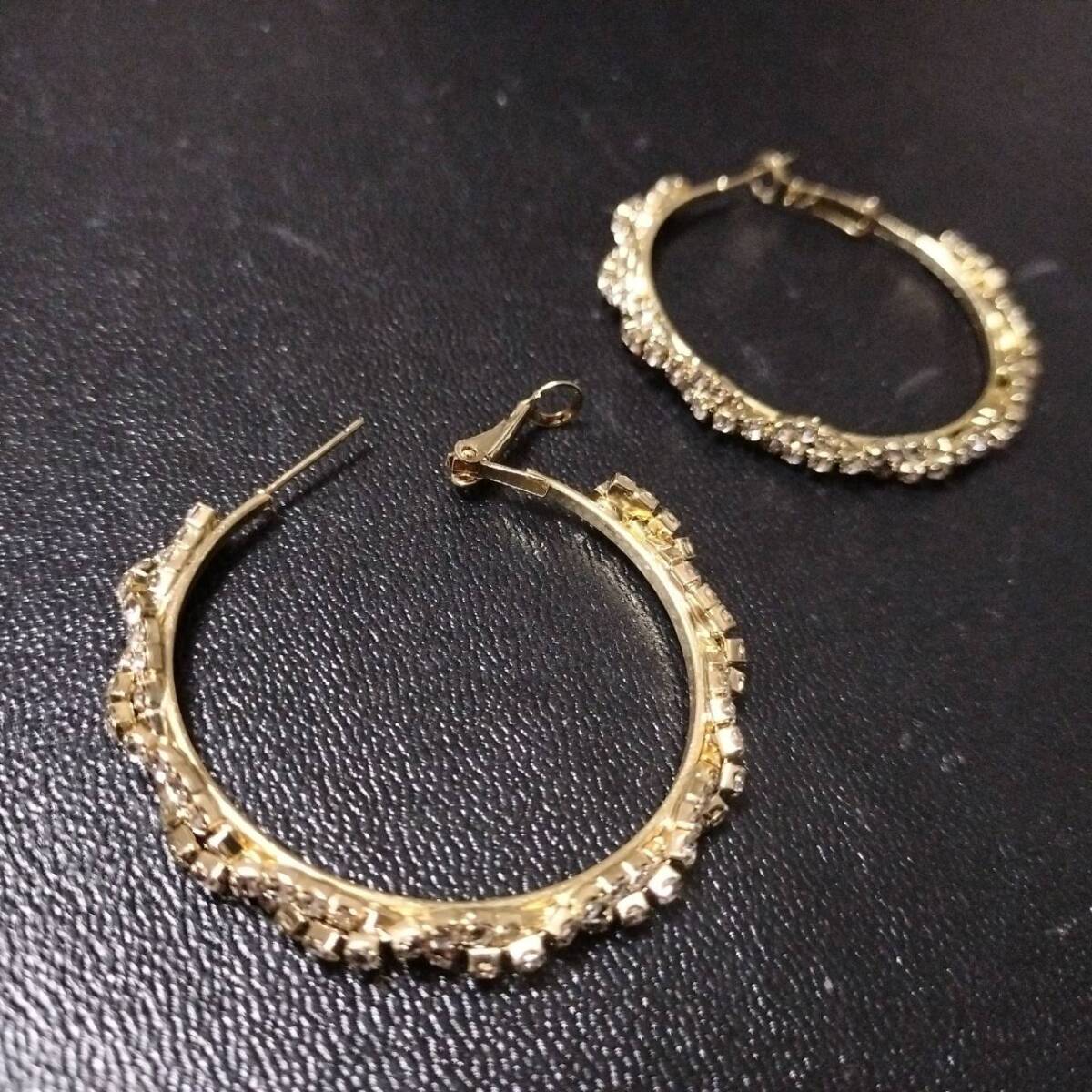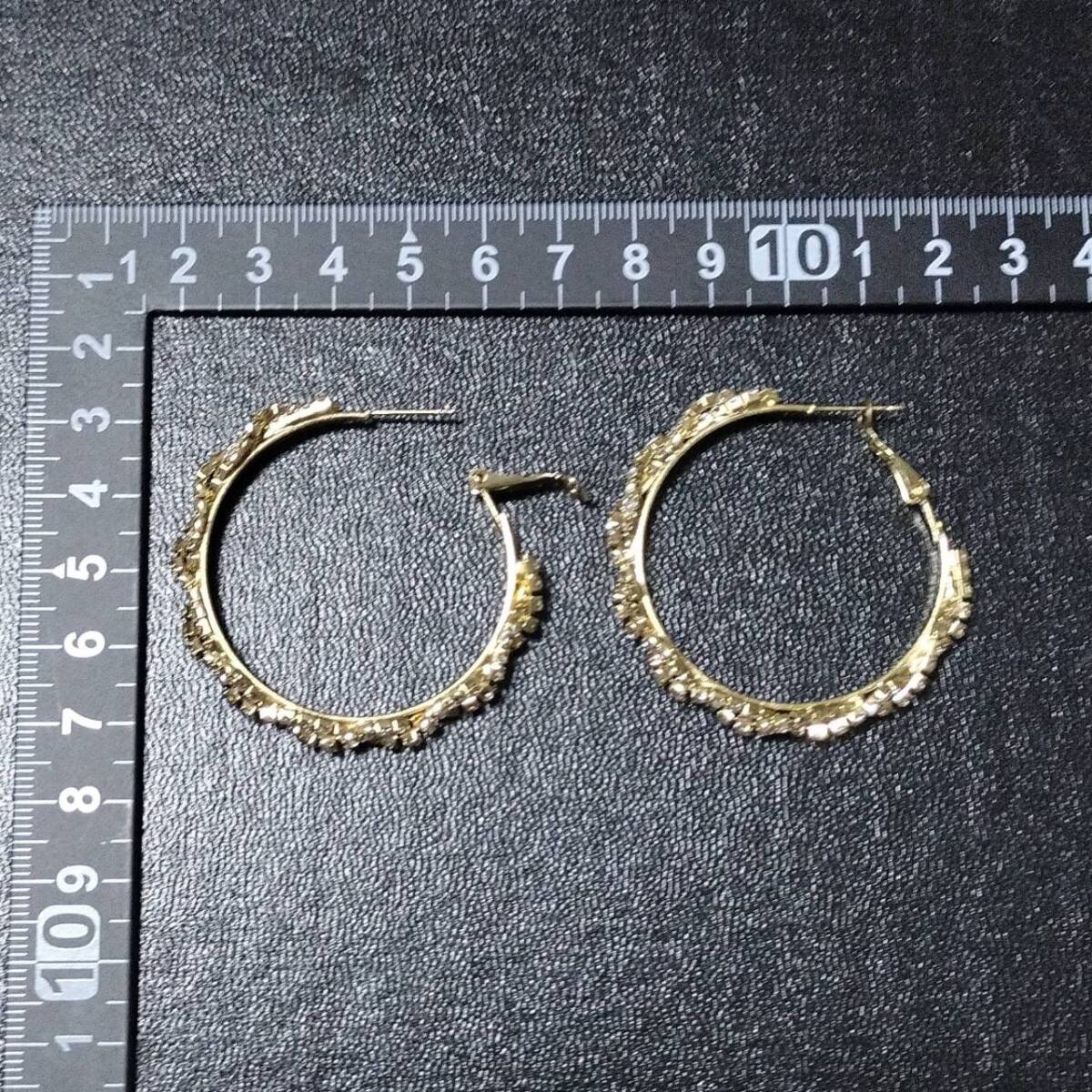 新品未使用 ピアス ゴールド ビッグ フープ ツイスト 大ぶり ラインストーン レディース 韓国 S925針 キラキラ 綺麗 パーティ #D175-2