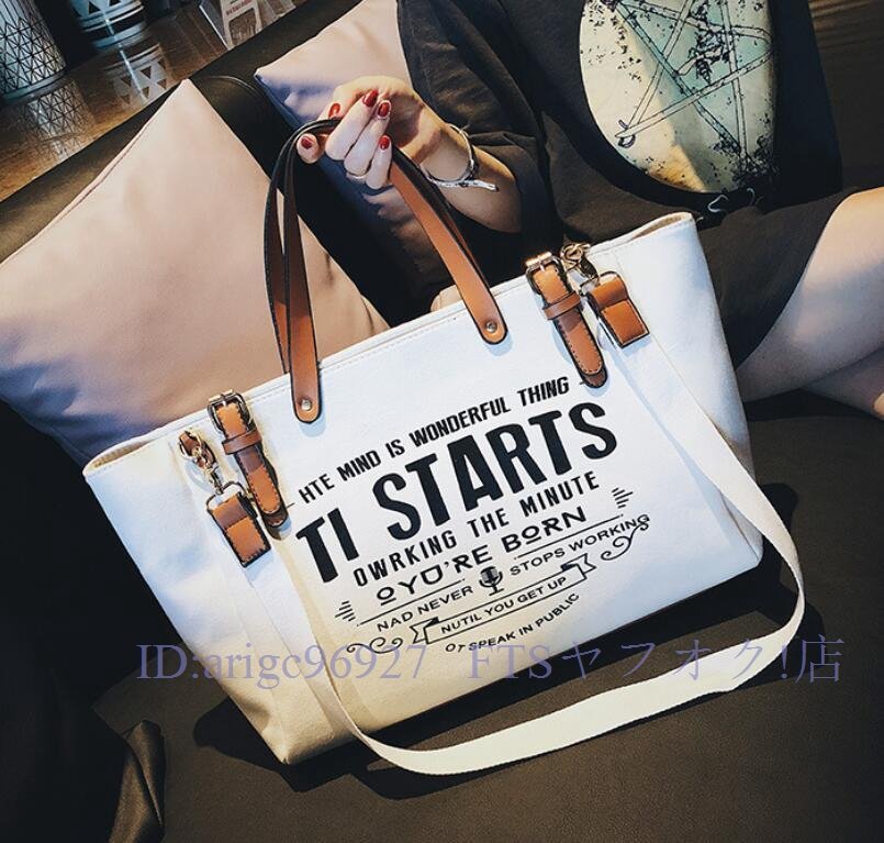 A7443★新品レディース トートバッグ ショルダーバッグ 2way 帆布 キャンバスショルダーバッグ 大容量 通勤 通学 ホワイト 大人気
