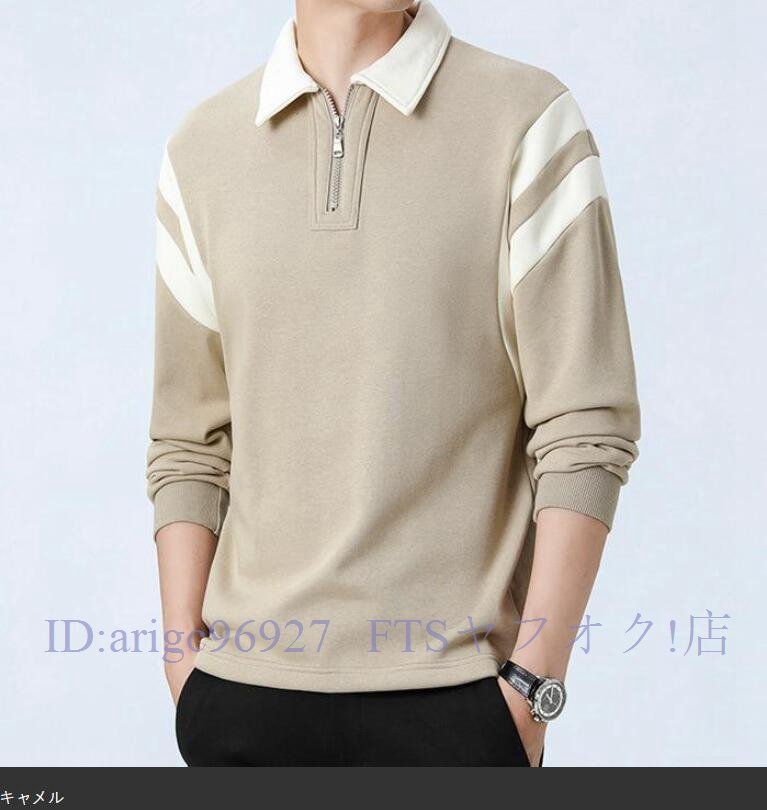 A7193★トレーナー パーカー スウェット ゴルフウェア 襟付き ハーフジップ 長袖 春秋冬 アウタドアスポーツ 運動着 ジャージキャメル