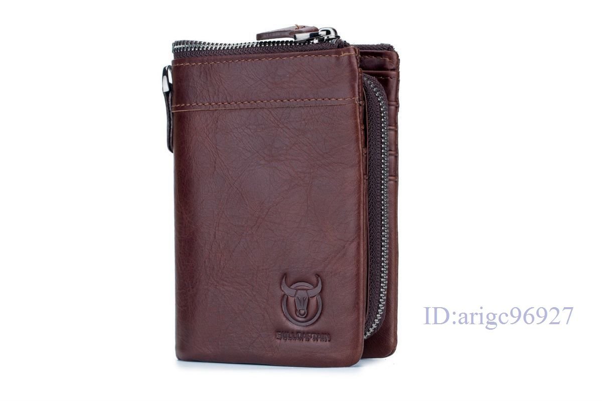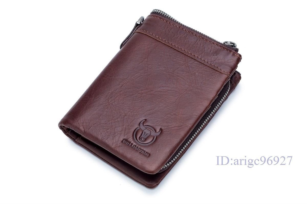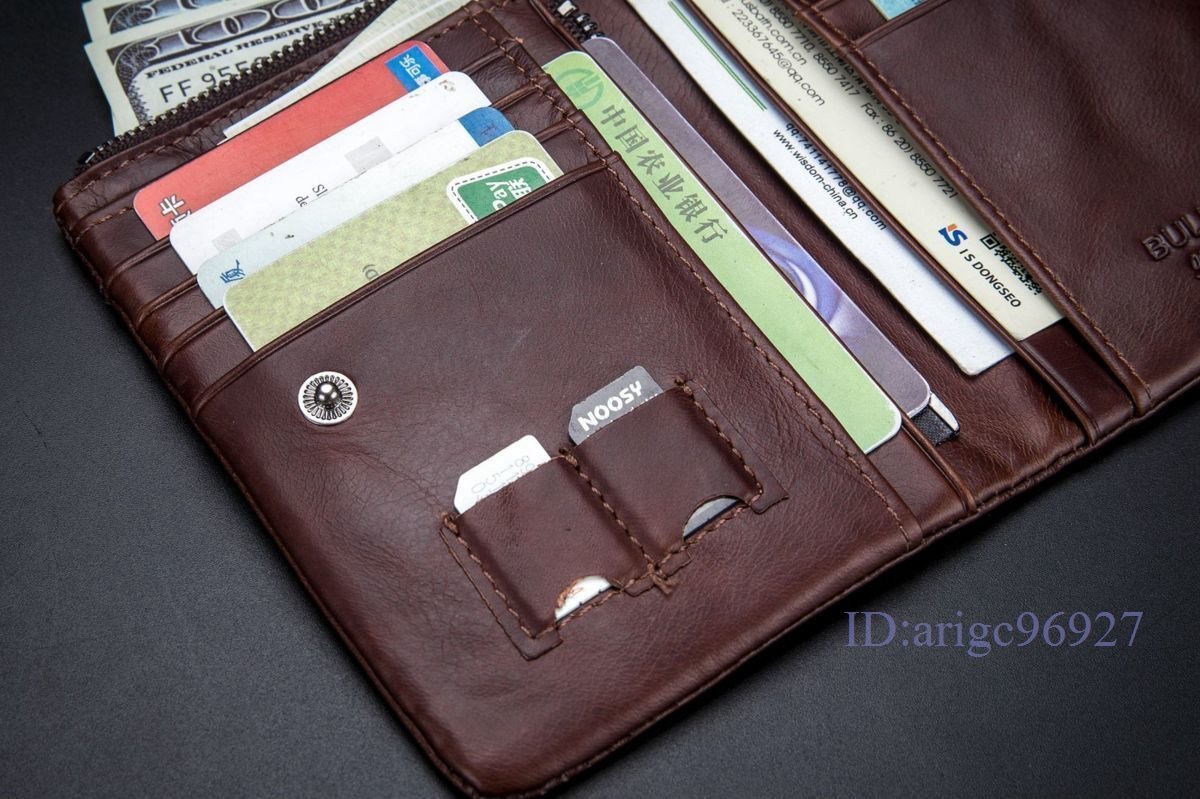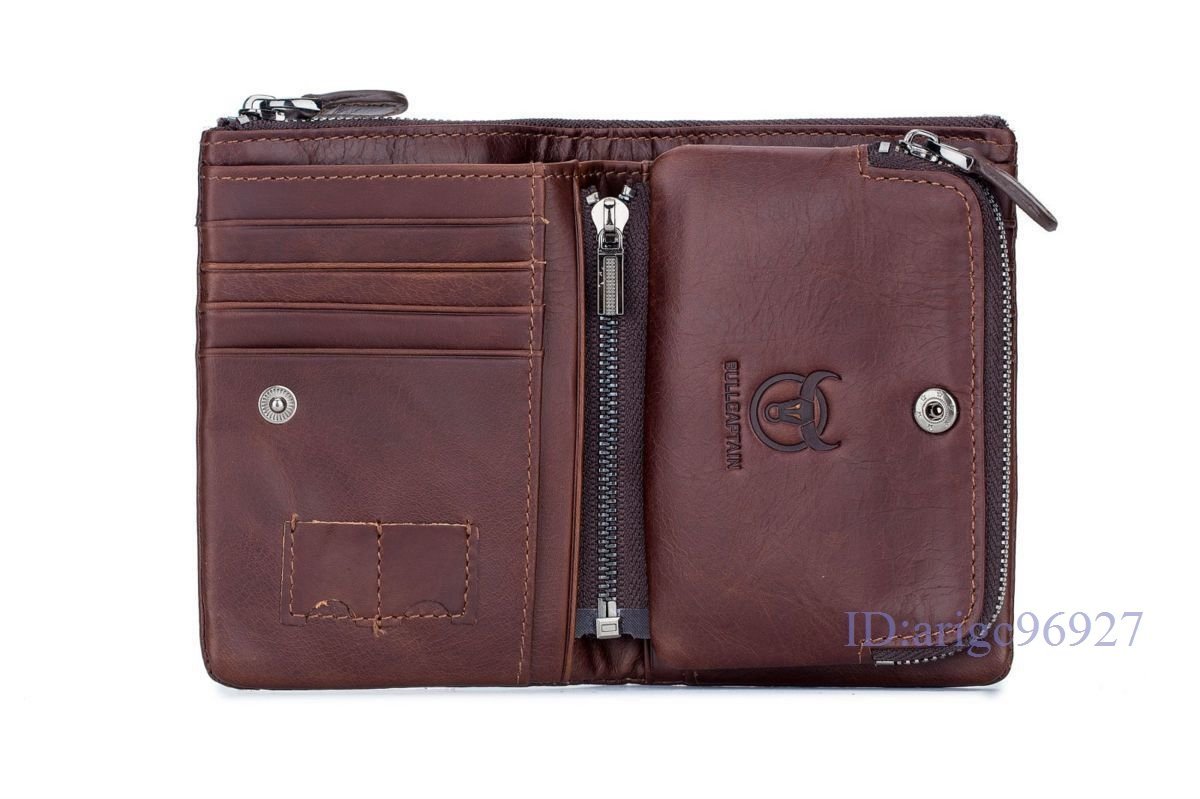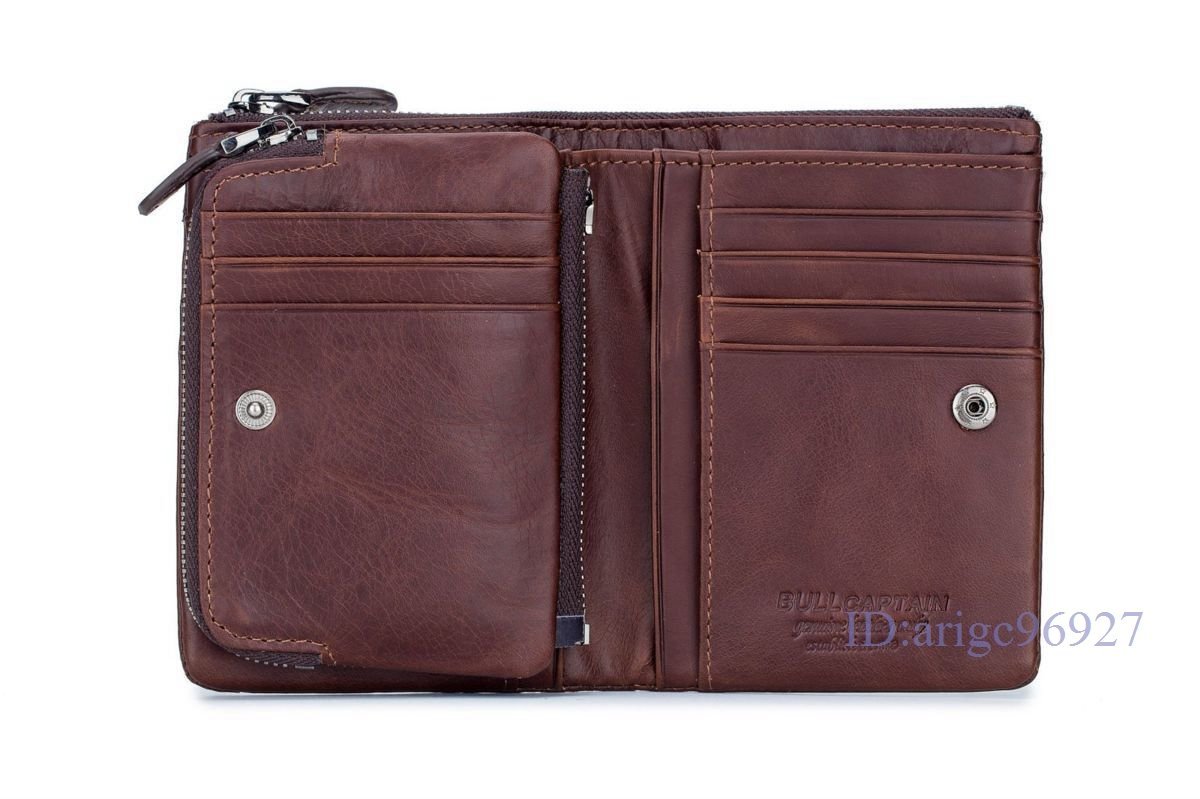 Y470☆新品ハイブランド BULL CAPTAIN 本革 牛革 多機能 二つ折り 財布 050 褐色