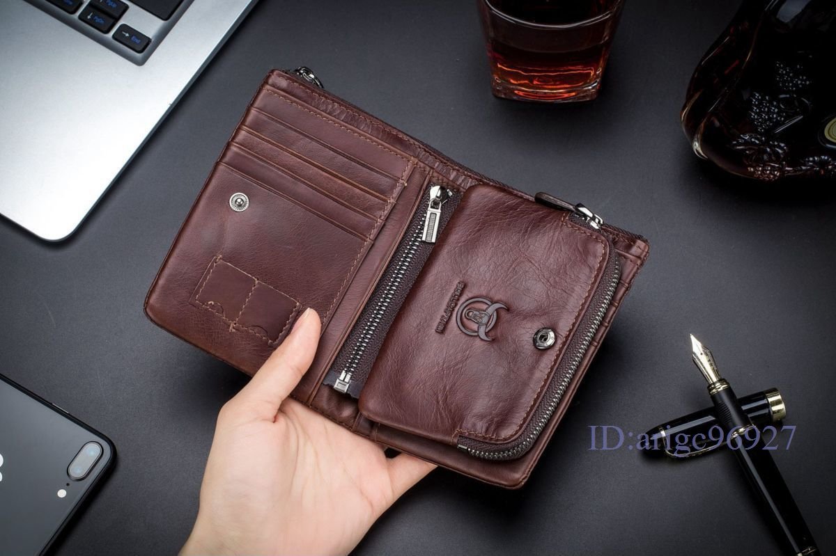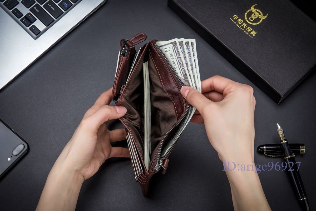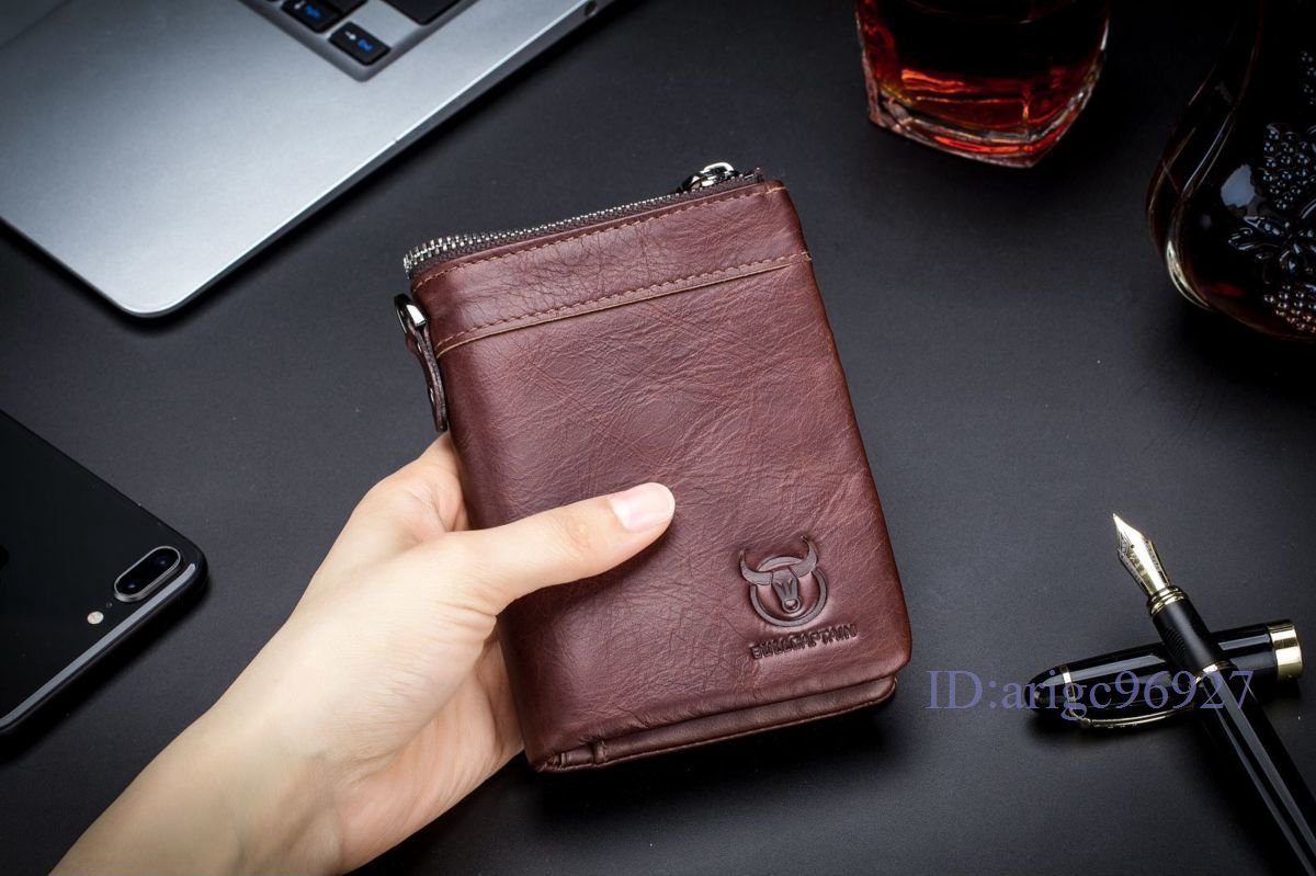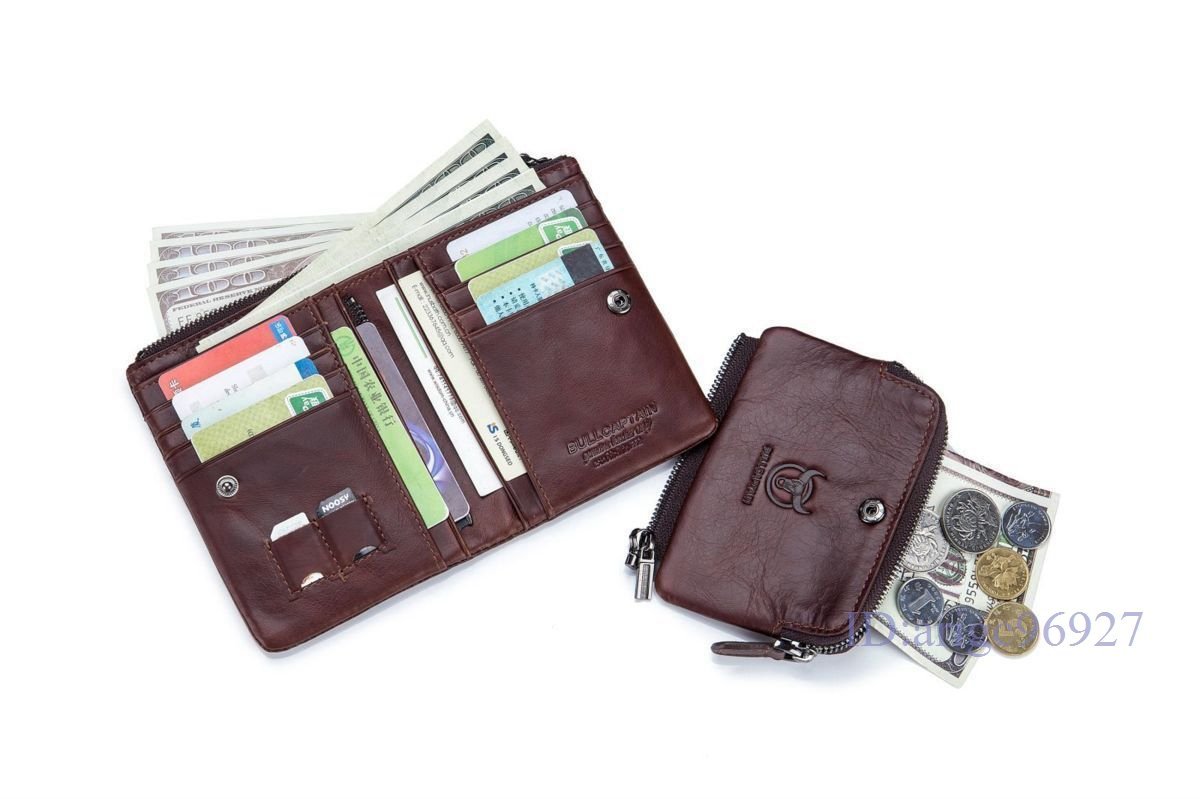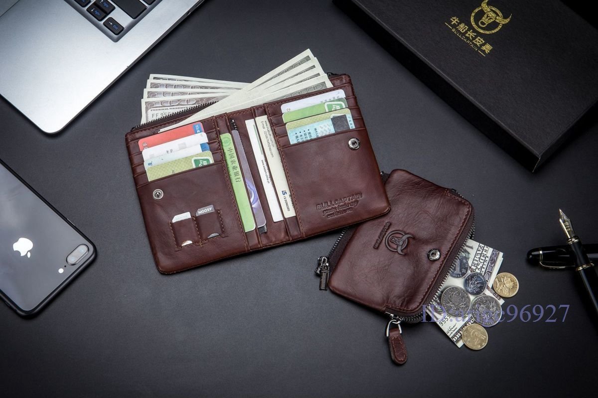 Y470☆新品ハイブランド BULL CAPTAIN 本革 牛革 多機能 二つ折り 財布 050 褐色