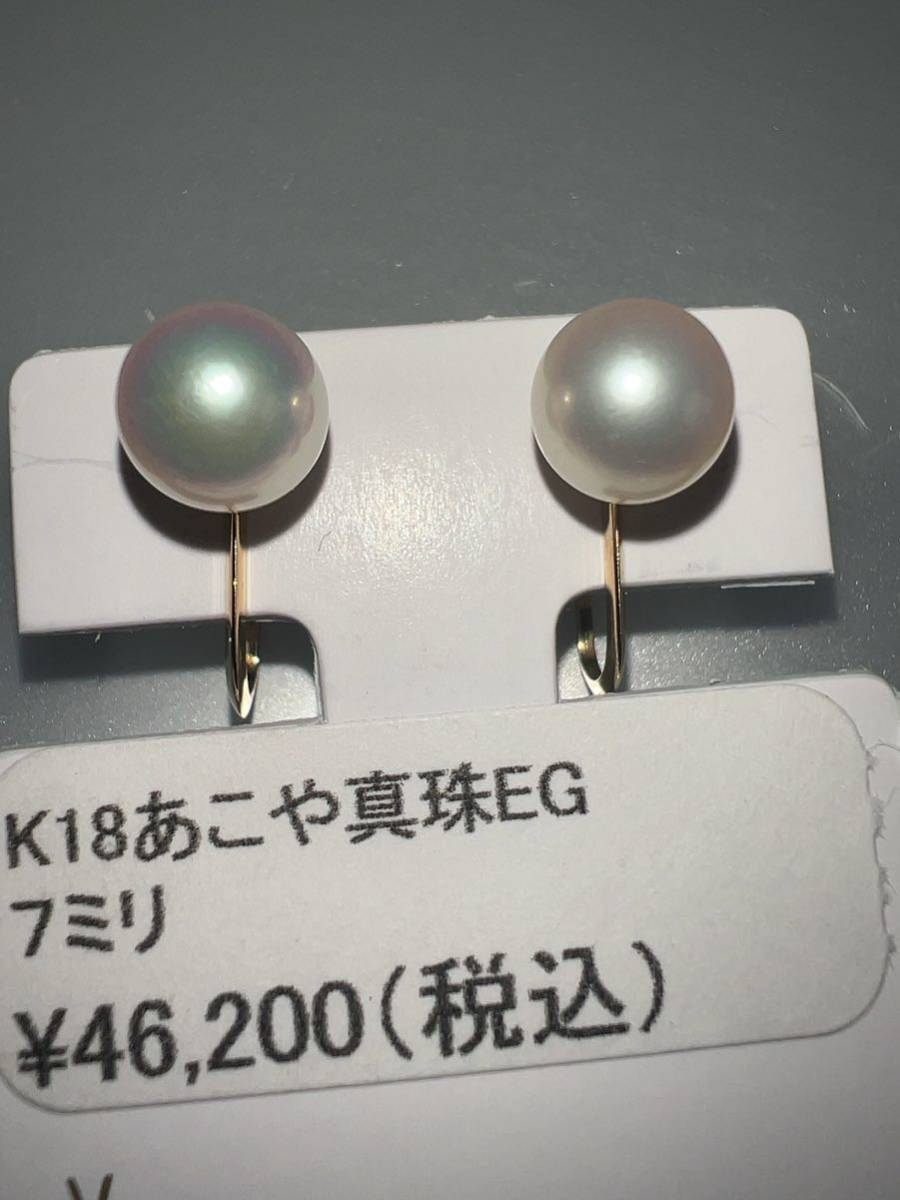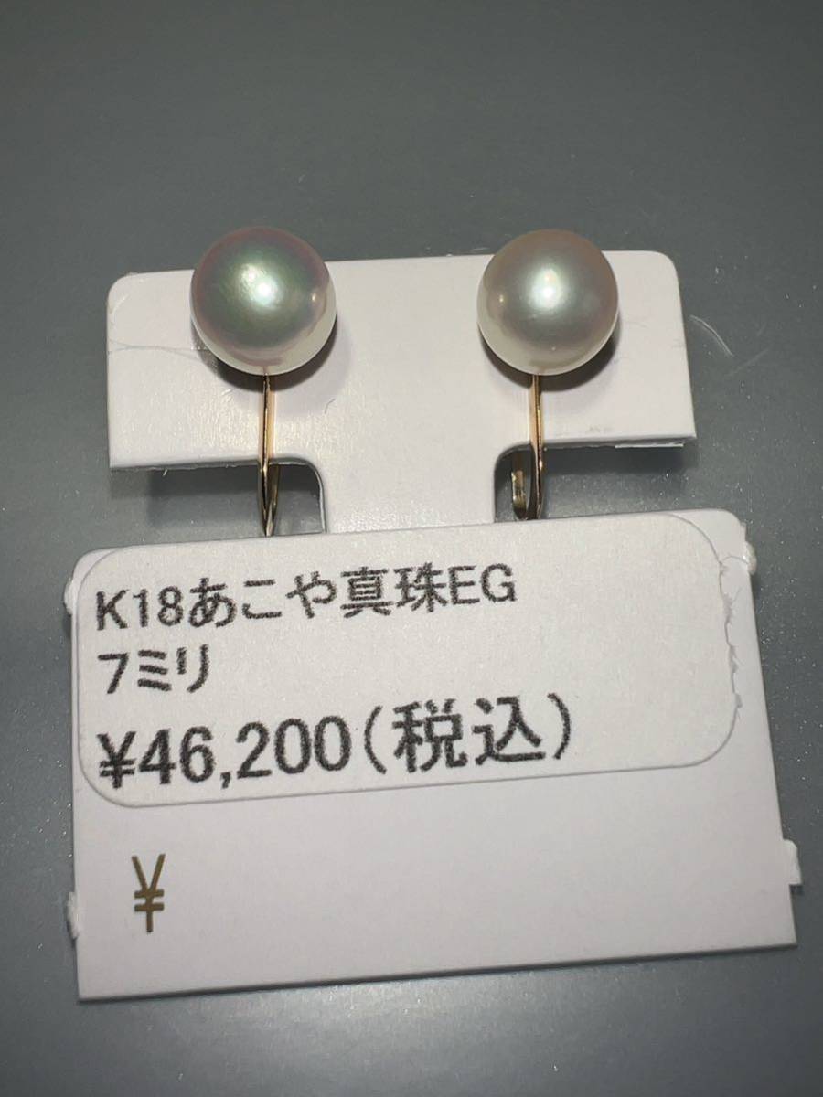 「アコヤ真珠高騰中」K18アコヤ真珠イヤリング 7ミリ KS4110
