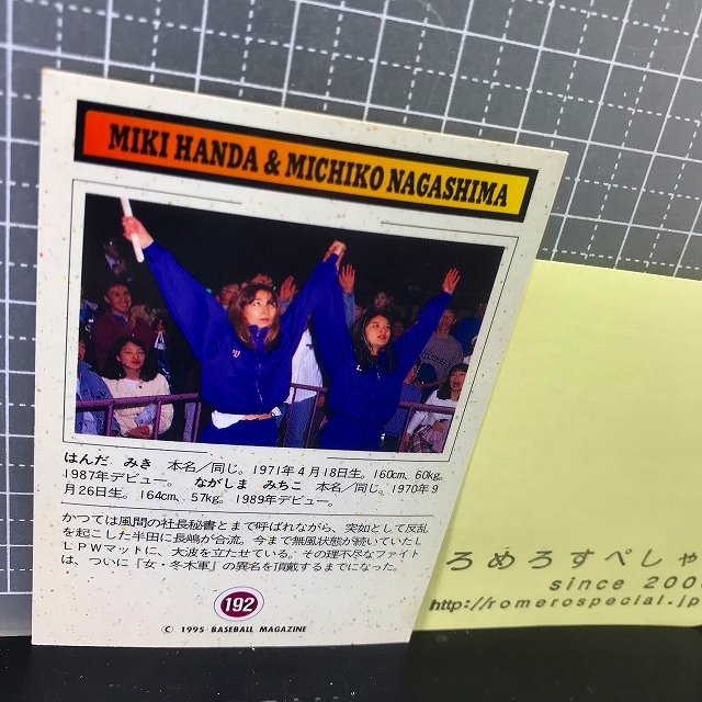 ◇1995年BBM♯192半田美希&長嶋美智子/Miki Handa/Michiko Nagashima/LLPW女子プロレス【プロレスカード】
