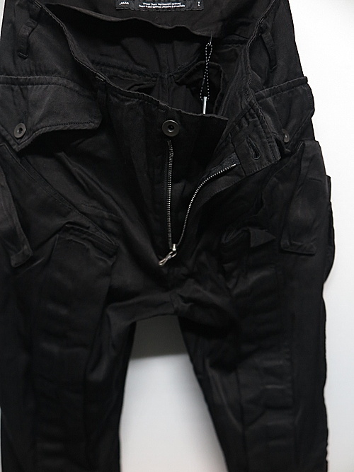 JULIUS(ユリウス) RAYON/COTTON RATINE TROUSERS13/BLACK 定価 77,000円(税込) 837PAM13-BLACK QUALITY レーヨン 56 % 綿 44 % SIZE 2 ウエスト 84 cm 股上 28 cm 股下 94 cm 渡り 30 cm 裾巾 18 cm made in China |