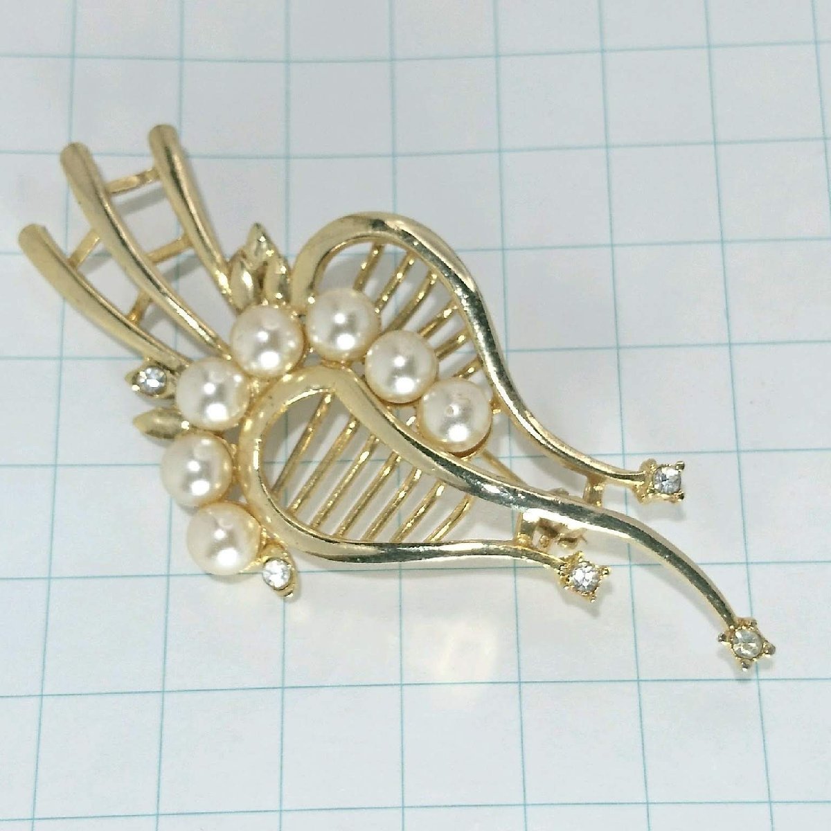 送料無料)ビンテージ☆パール デザインブローチ☆アンティーク ブローチ A21857