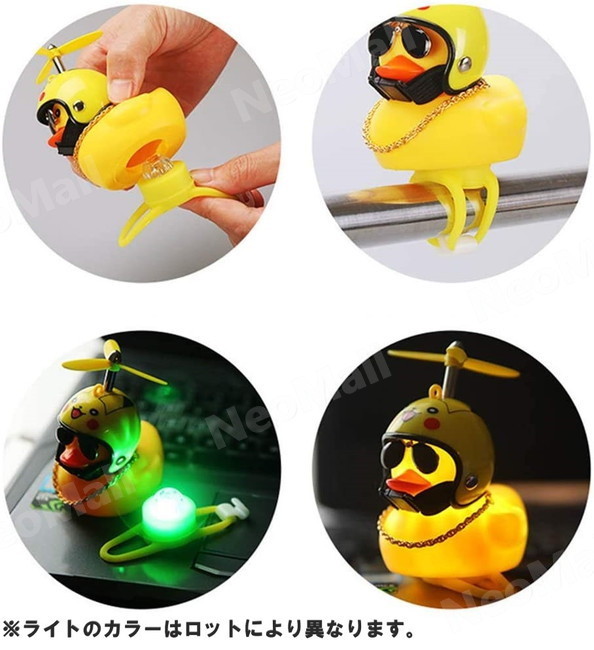 【送料コミコミ】 光る ちょいワル アヒル メタルピンク 自転車 バイク 車に!サングラス ネックレス プロペラ ライフル付き