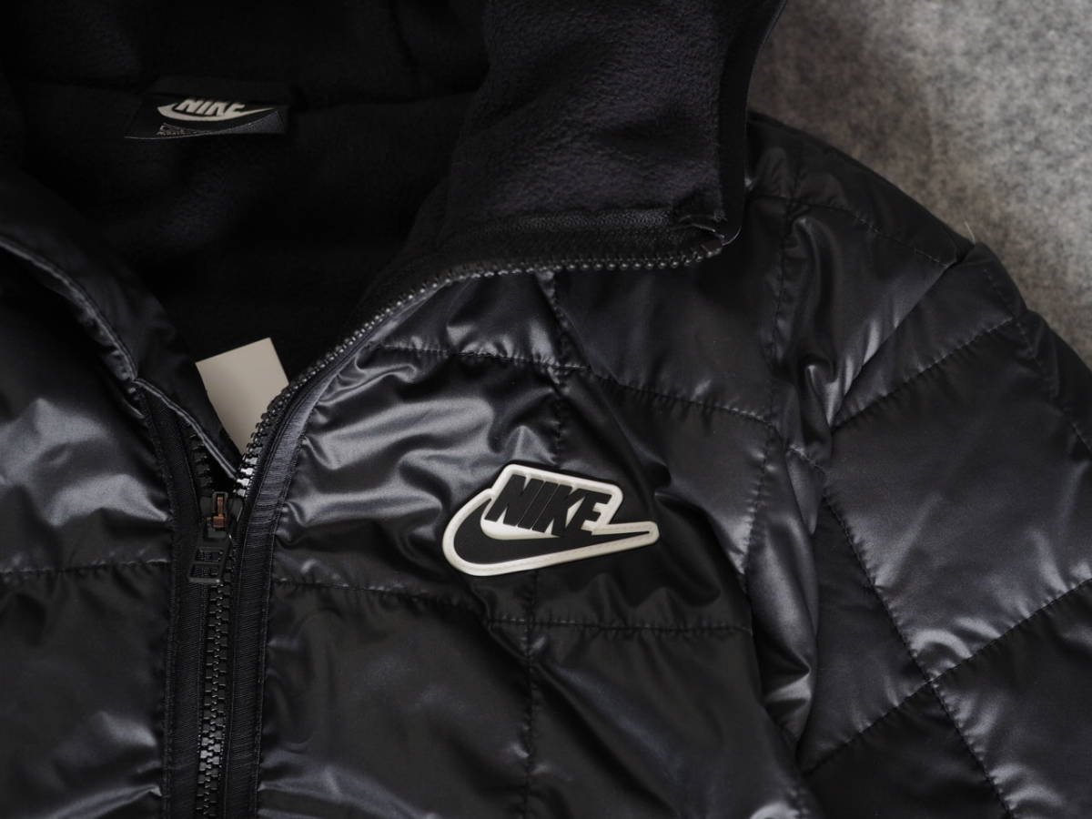 ナイキ スポーツウェア ジャケットは、合成素材の断熱シートとフリースの裏地を組み合わせ、かさばらずに暖かさをキープ。