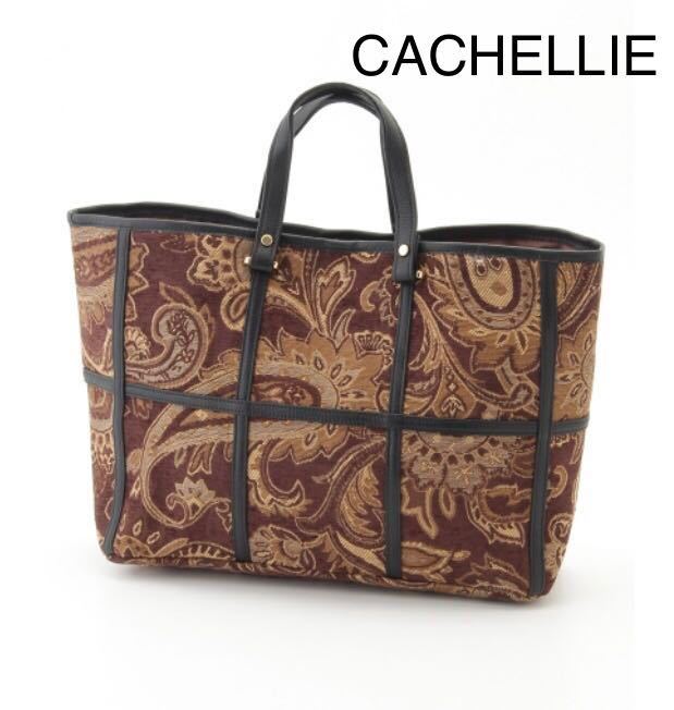 CACHELLIE【新品】カシェリエ トートバッグ 織柄 普段使い 通勤 レディース たっぷりサイズ 牛革 手提げ ブラウン 大人 ハンドバッグ