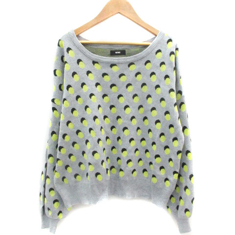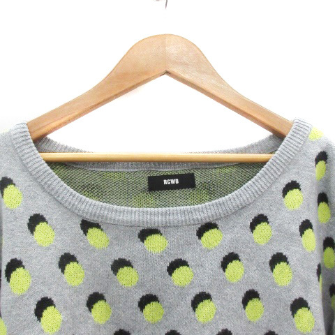 ロデオクラウンズワイドボウル RODEO CROWNS WIDE BOWL RCWB ニット カットソー 長袖 ラウンドネック ドット柄 F グレー /YM35 レディース