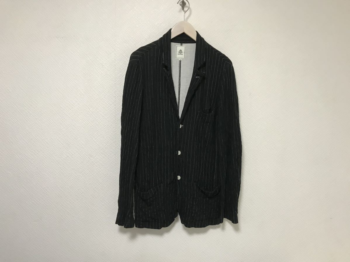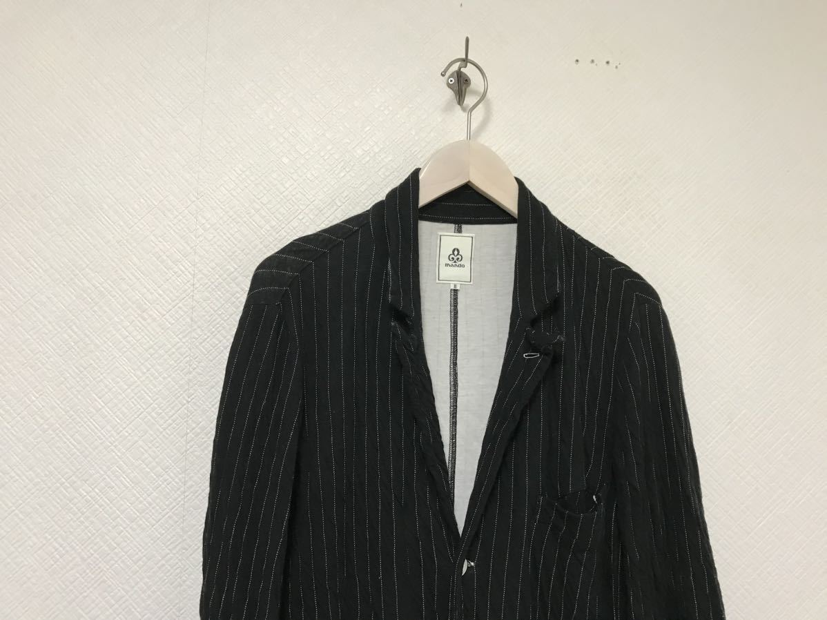 商品名:本物マンドmandoコットンストライプ柄ジャケットメンズサーフアメカジミリタリービジネススーツ黒ブラック2M