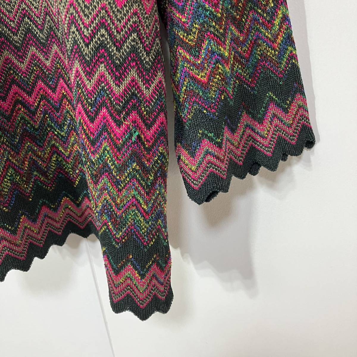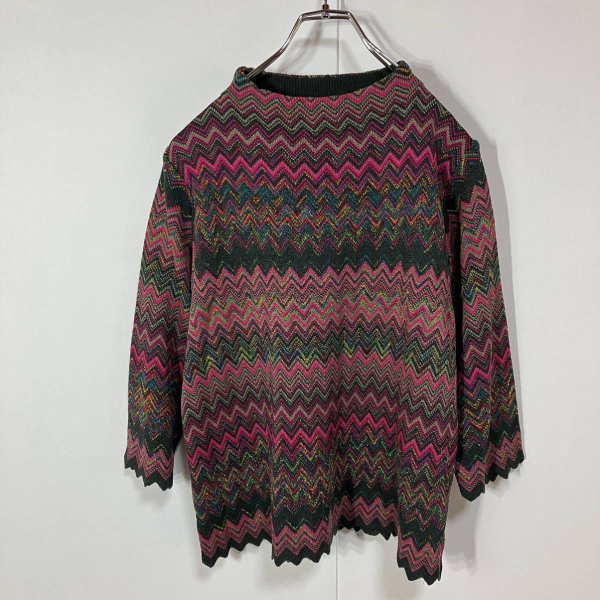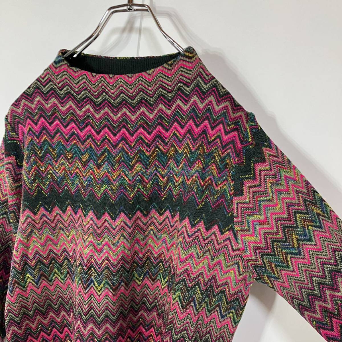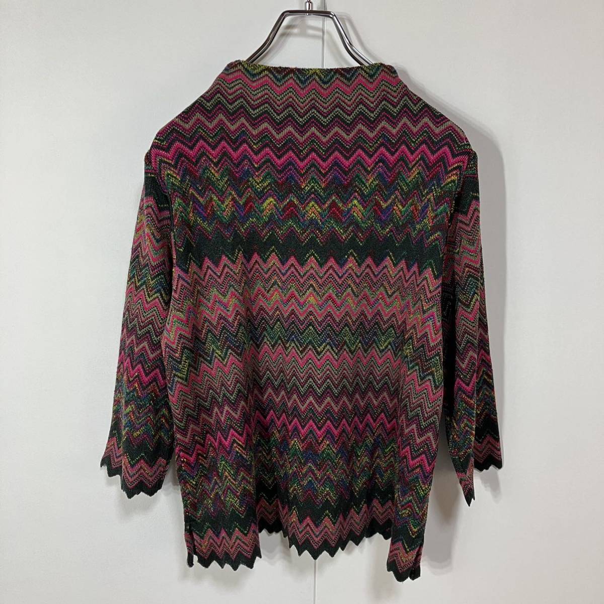 ヴィンテージ マルチカラー ギザギザ デザイン レトロ 七分袖 ニット セーター 古着 の紹介になります。